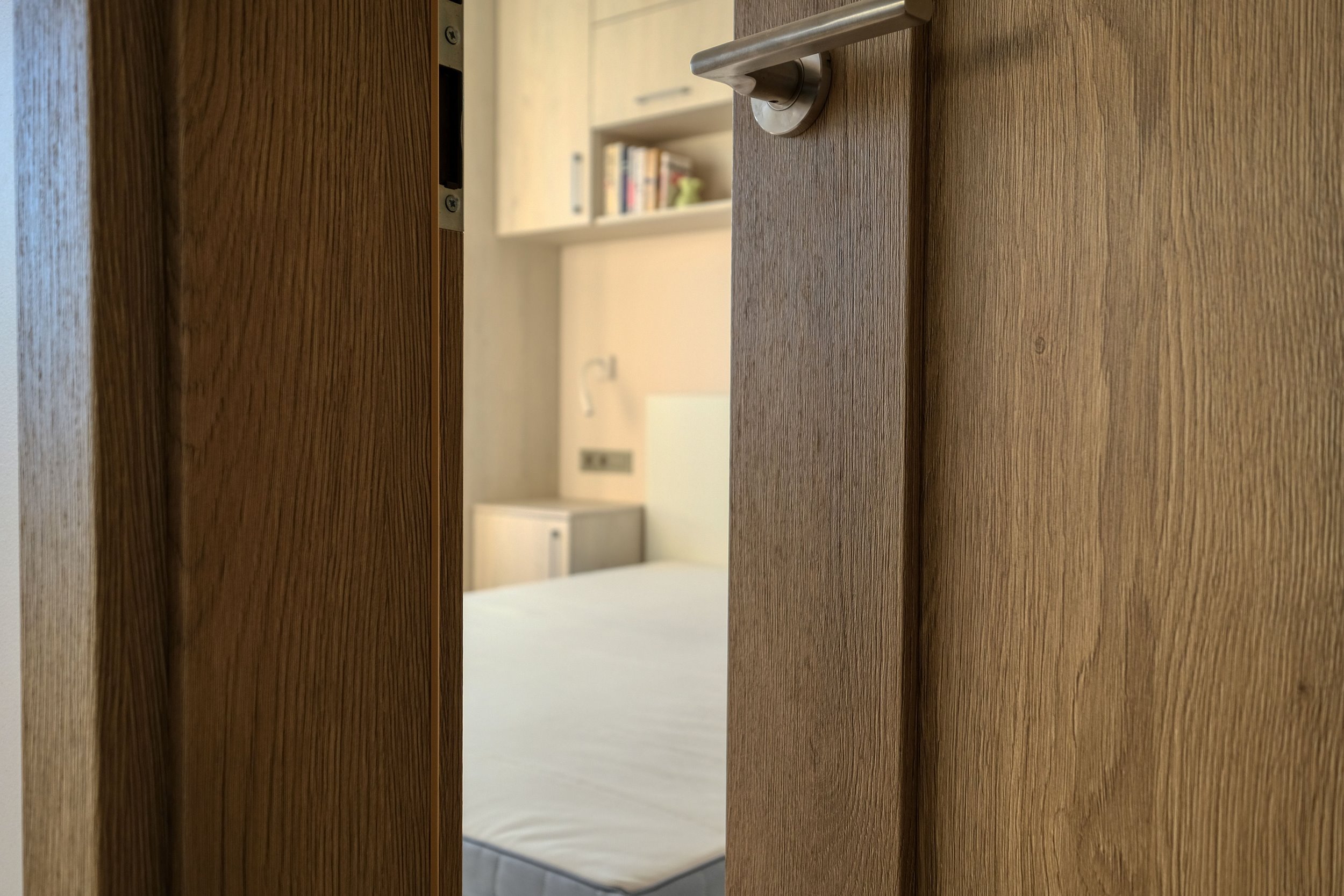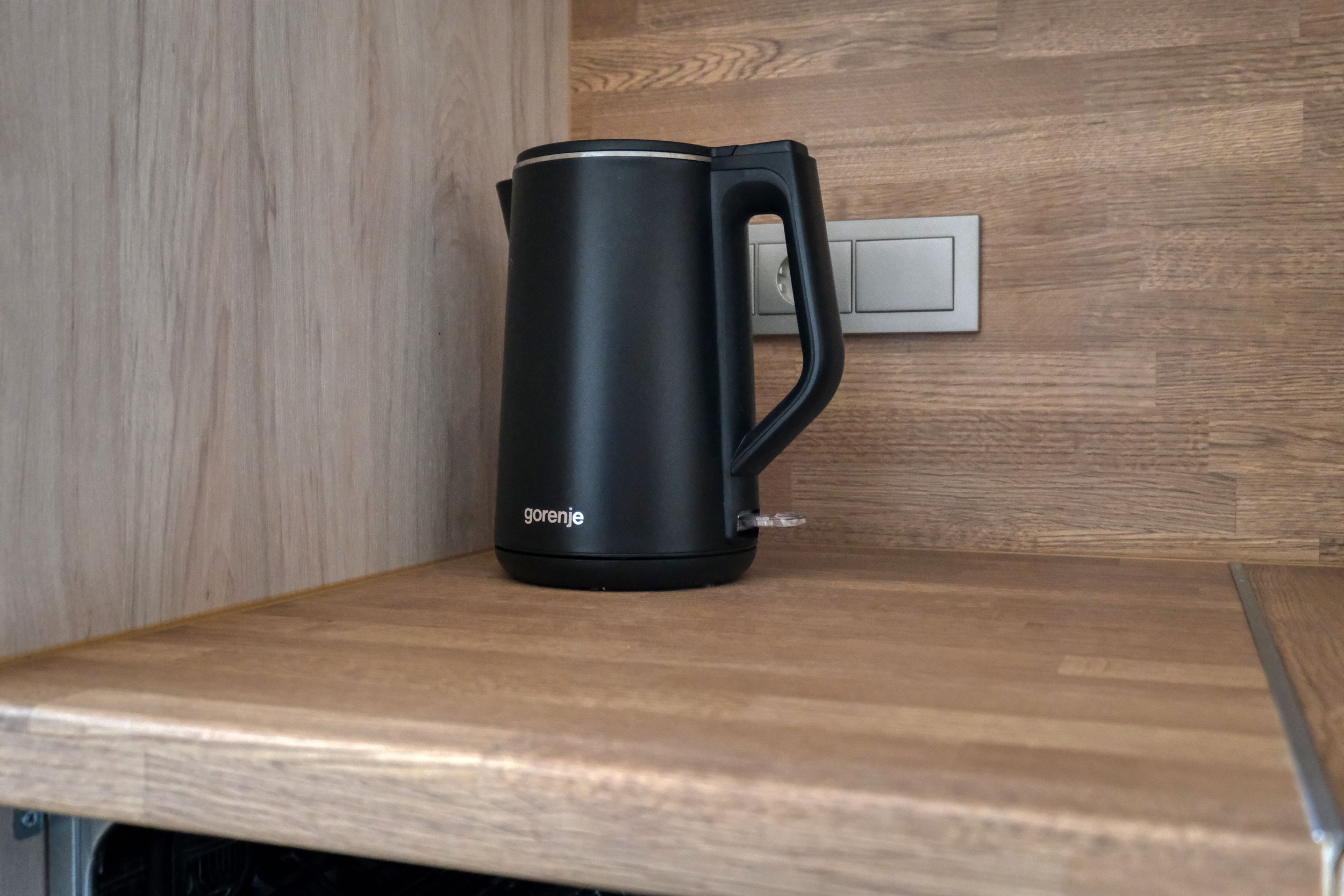 • Visame bute grindinis šildymas (išskyrus vonios kambarį), reguliuojamas atskirai svetainėje ir miegamajame