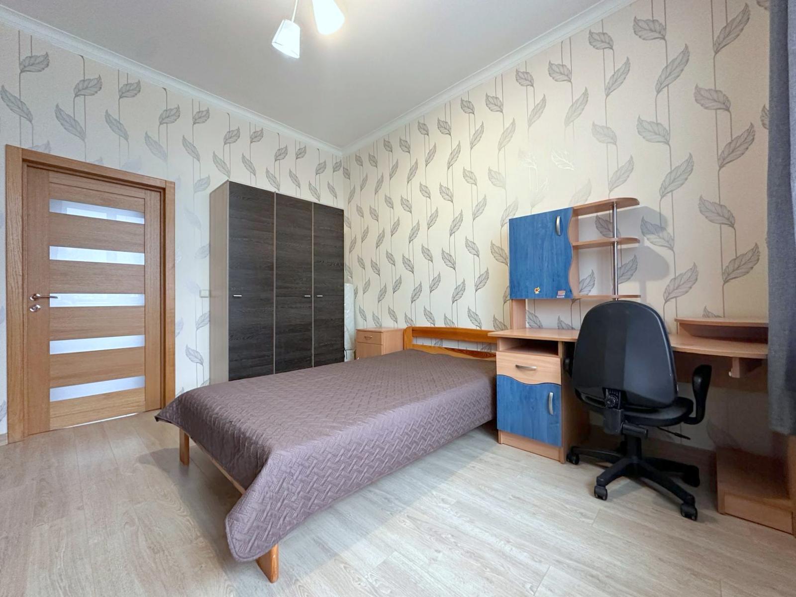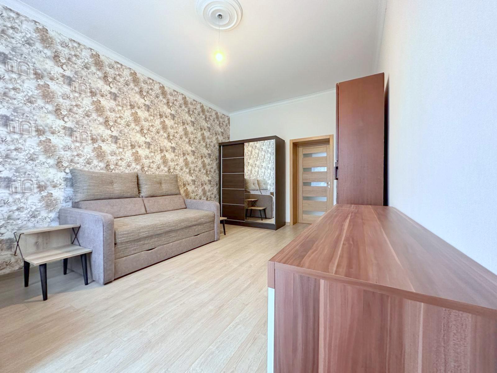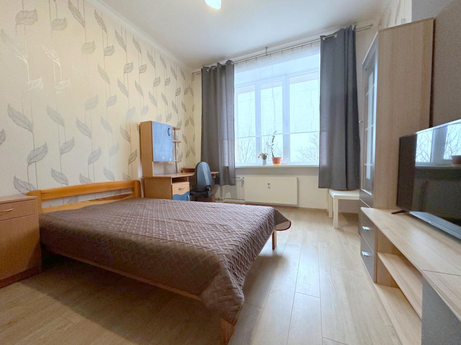 Išplanavimas: 2 kambariai - vienas iš jų miegamasis su darbo zona, kitas - miegamasis su svetaine, virtuvė atskirai, tualetas atskirai nuo vonios, erdvus prieškambaris.