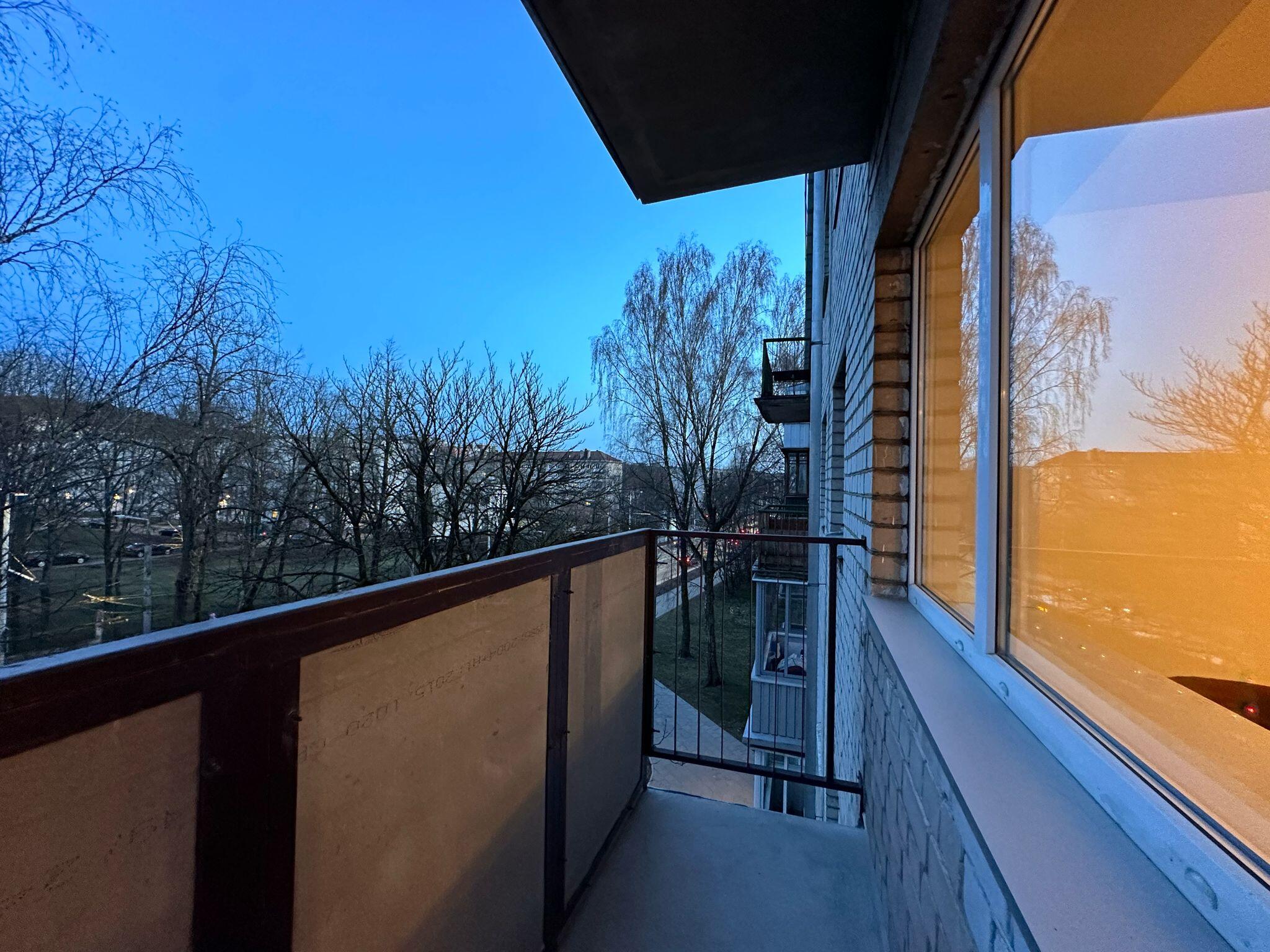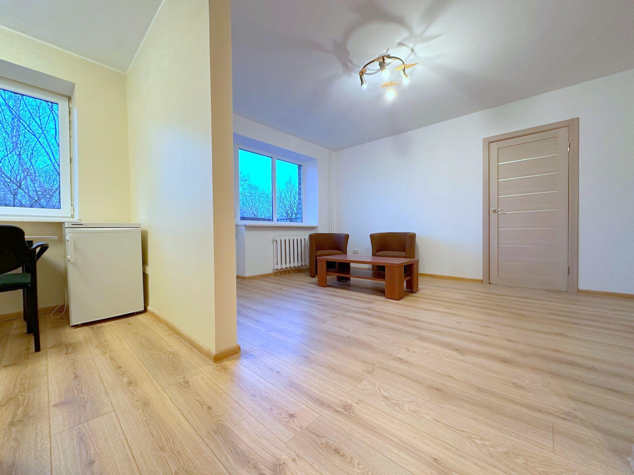 Išplanavimas: 2 kambariai - vienas iš jų miegamasis su dvigule lova ir spinta, kitas kambarys - svetainė su sofa ir balkonu, virtuvė, tualetas kartu su dušu, prieškabaris.