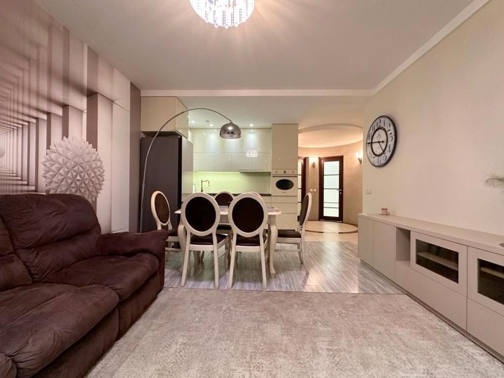 Išplanavimas: 2 miegamamieji kambariai, svetainė sujungta su virtuve, itin erdvus vonios kambarys, kuriame yra dušas, wc, bide, kosmetinis staliukas.