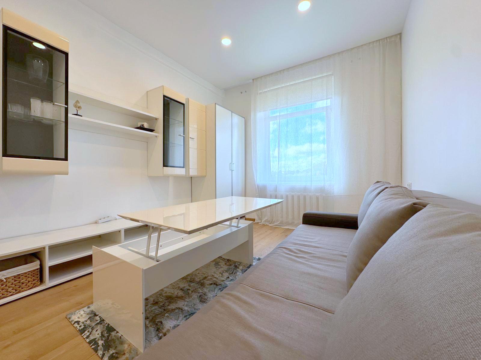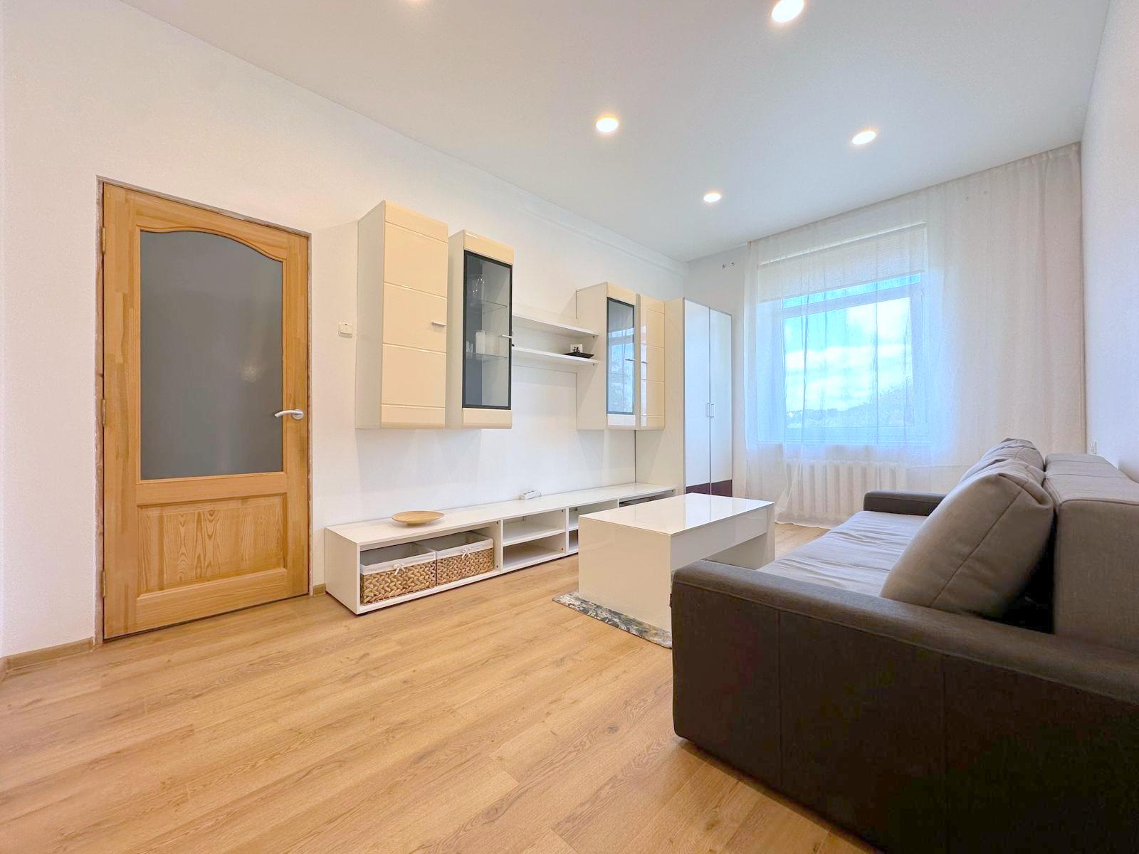 Butas nuomojamas su visais baldais ir buitine technika, kaip nuotraukose. Kambaryje yra viengulė išskleidžiama lova bei dvivietė sofa - lova, tad laisvai galėtų gyventi ir du studentai.