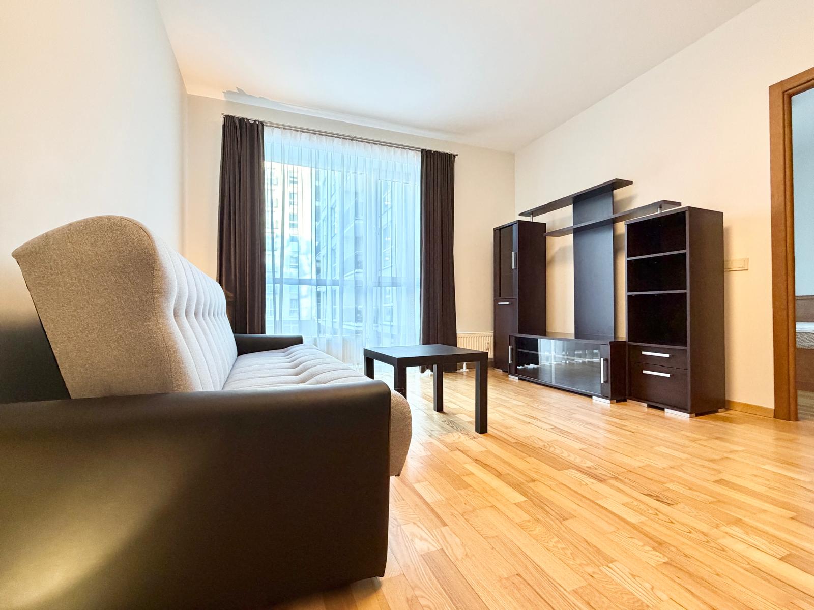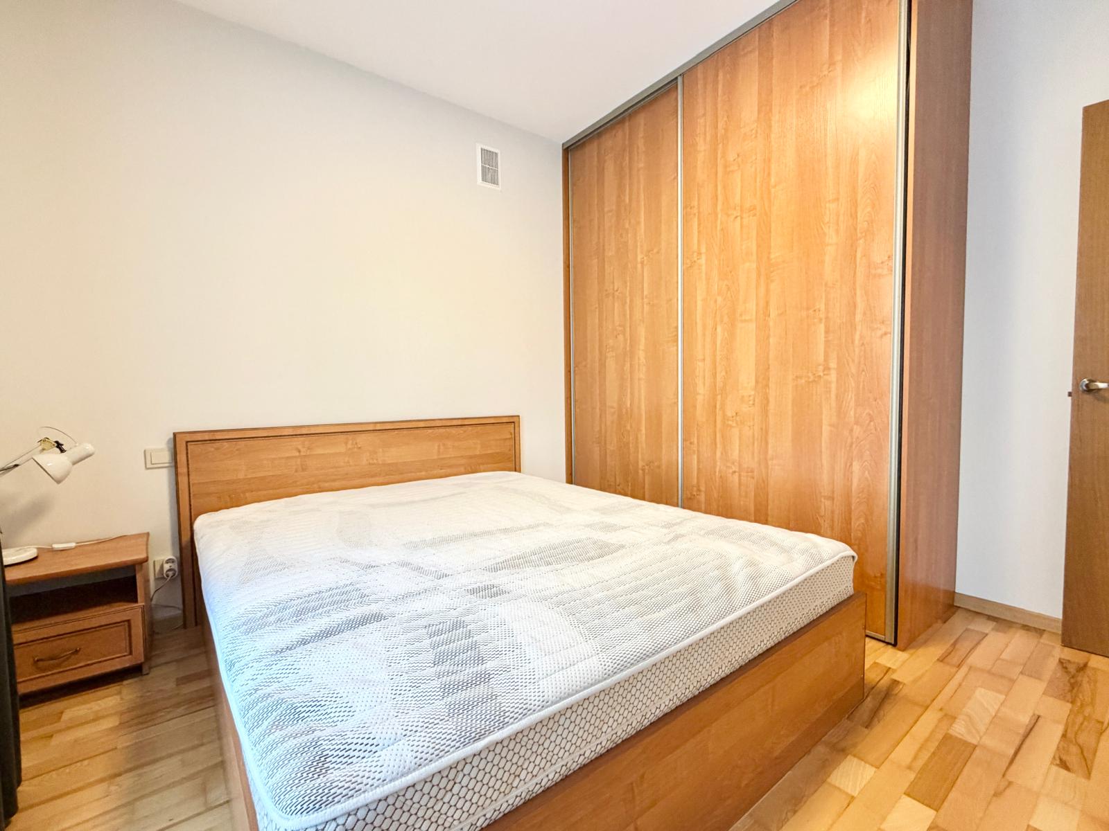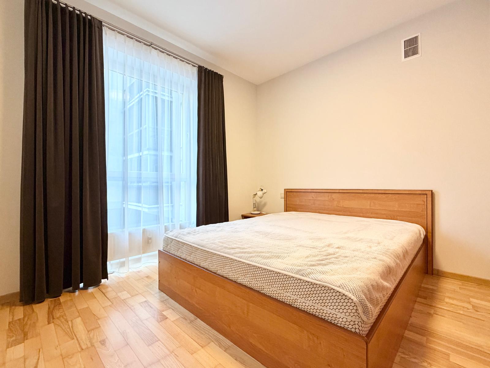 Butas išsiskiria tikro medinio parketo grindimis, kurios suteikia jaukumo ir kokybės pojūtį. Suplanuotas atskiras miegamasis bei itin erdvi svetainė, sujungta su virtuve – puiki erdvė tiek poilsiui, tiek bendravimui. Patogiam daiktų laikymui įrengtos dvi talpios sieninės spintos.