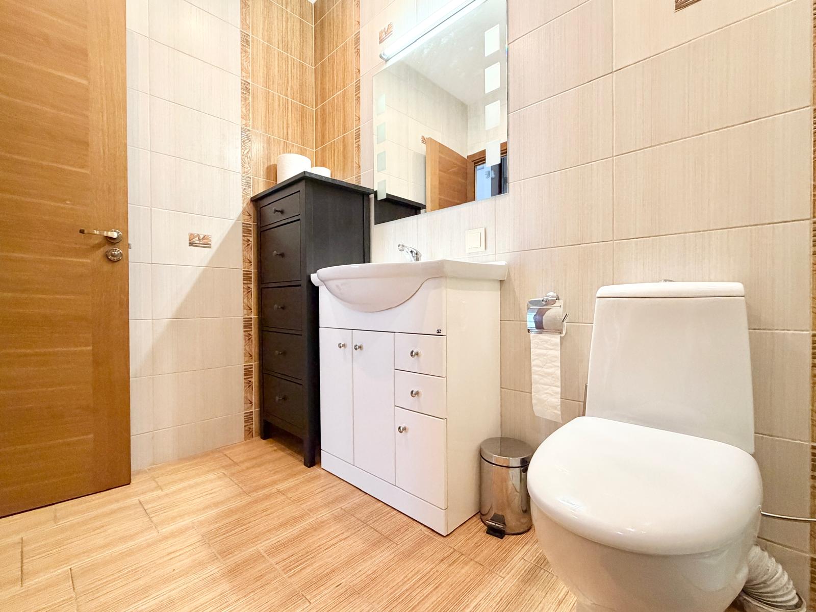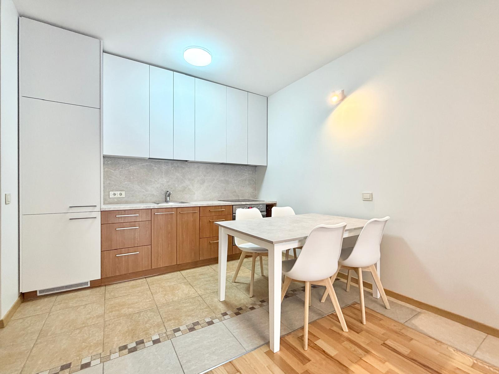 Sumontuota nauja, moderni virtuvė su visa būtiniausia buitine technika. Koridoriuje – šildomos grindys, užtikrinančios komfortą šaltuoju metų laiku. Vonios kambaryje įrengta nauja dušo kabina.