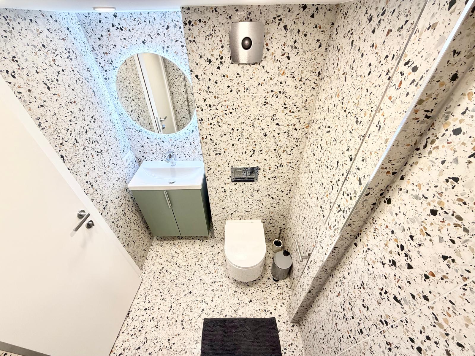 Bute yra visi reikalingiausi baldai, didelės spintos , kondicionierius, mini rekuperatorius ,skalbimo mašina-džiovyklė, šaldytuvas, viryklė ir t.t.