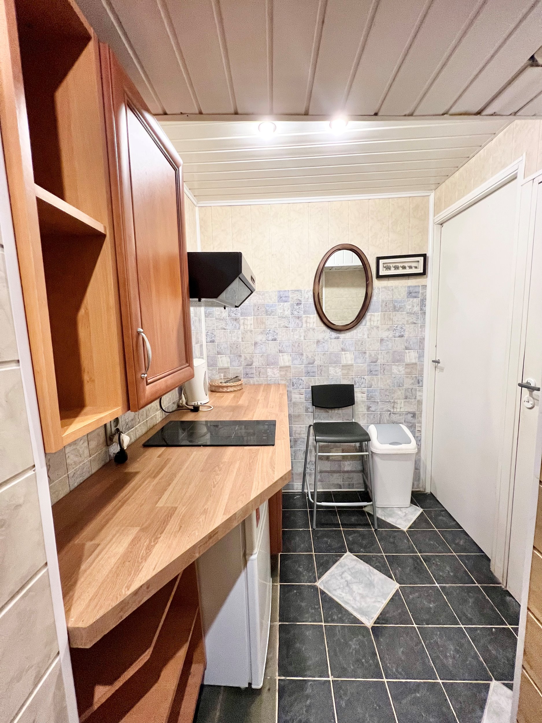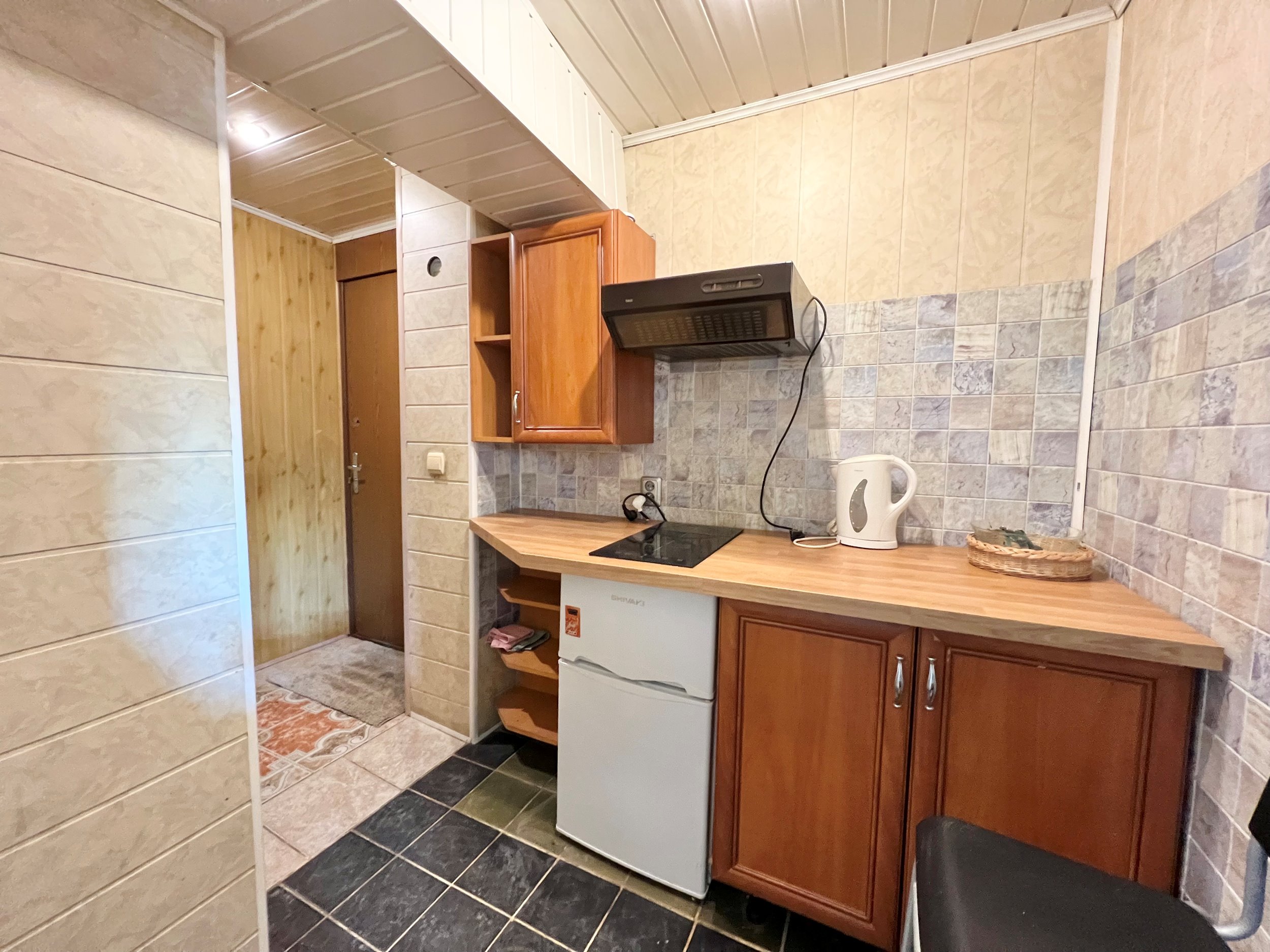 Bute yra visi baldai ir buitinė technika - skalbimo mašina, šaldytuvas , el. viryklė, gartraukis, virdulys ir t.t.