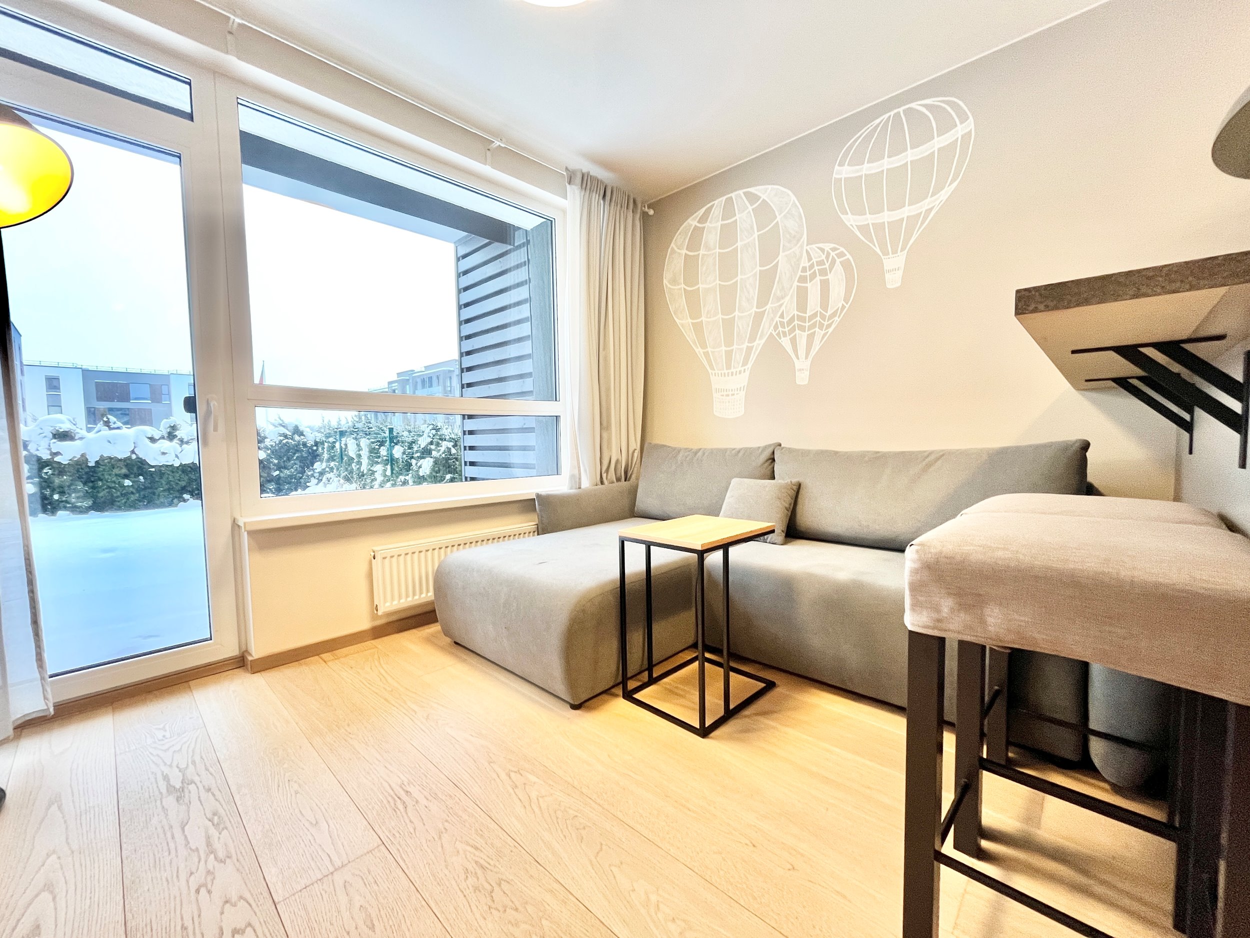 Dideli langai orientuoti į vakarų pusę, todėl vasaros metu galėsite mėgautis įspūdingais saulėlydžiais. Butas labai šiltas, o žiemos metu išlaikymo kaštai - itin nedideli.