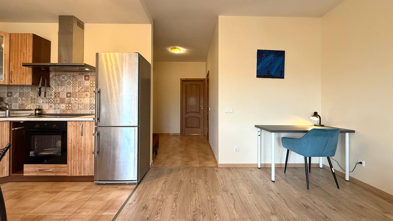 -Svetainėje patogi, išskleidžiama sofa-lova ir darbo stalas