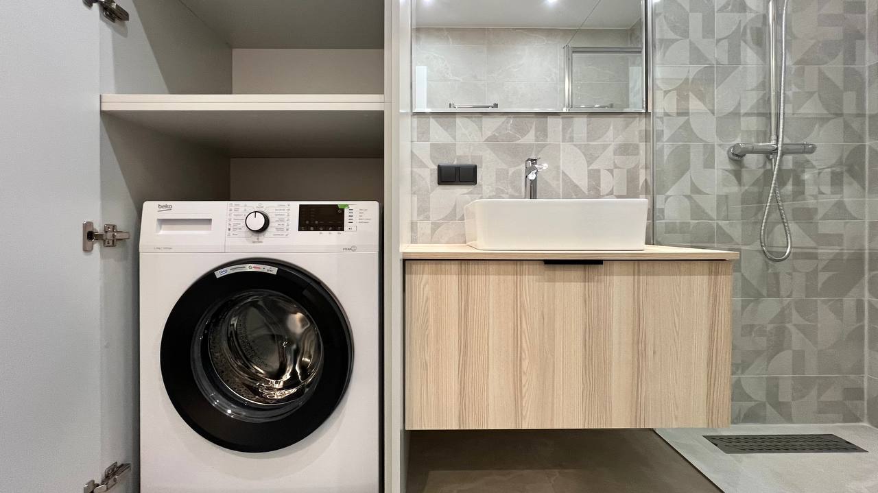 -Bute yra visi reikalingi baldai ir buitinė techika(viryklė, orkaitė, šaldytuvas, skalbimo mašina)