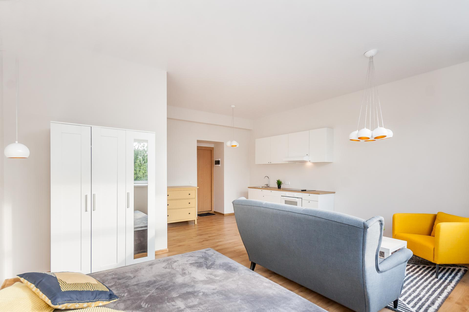 Nuomojamas itin šviesus, jaukus erdvaus išplanavimo vieno kambario butas Antakalnyje, P. Vileišio gatvėje.