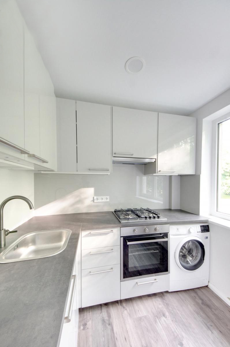 --Visa reikalinga buitinė technika: šaldytuvas, viryklė, skalbimo mašina ir kt.