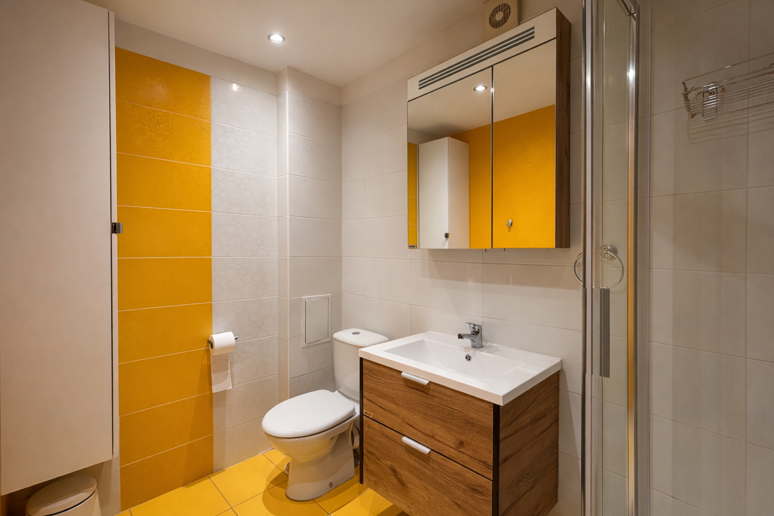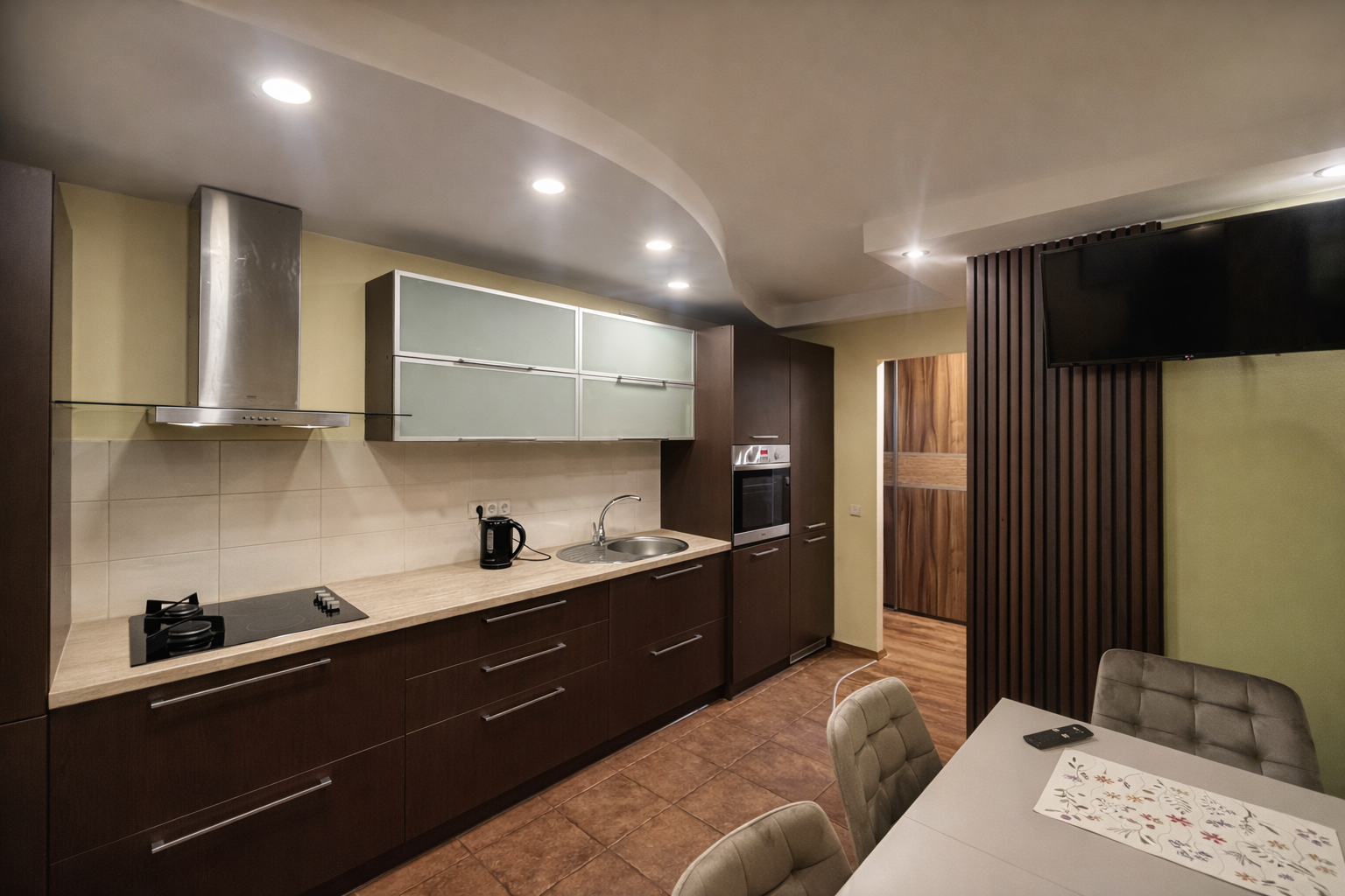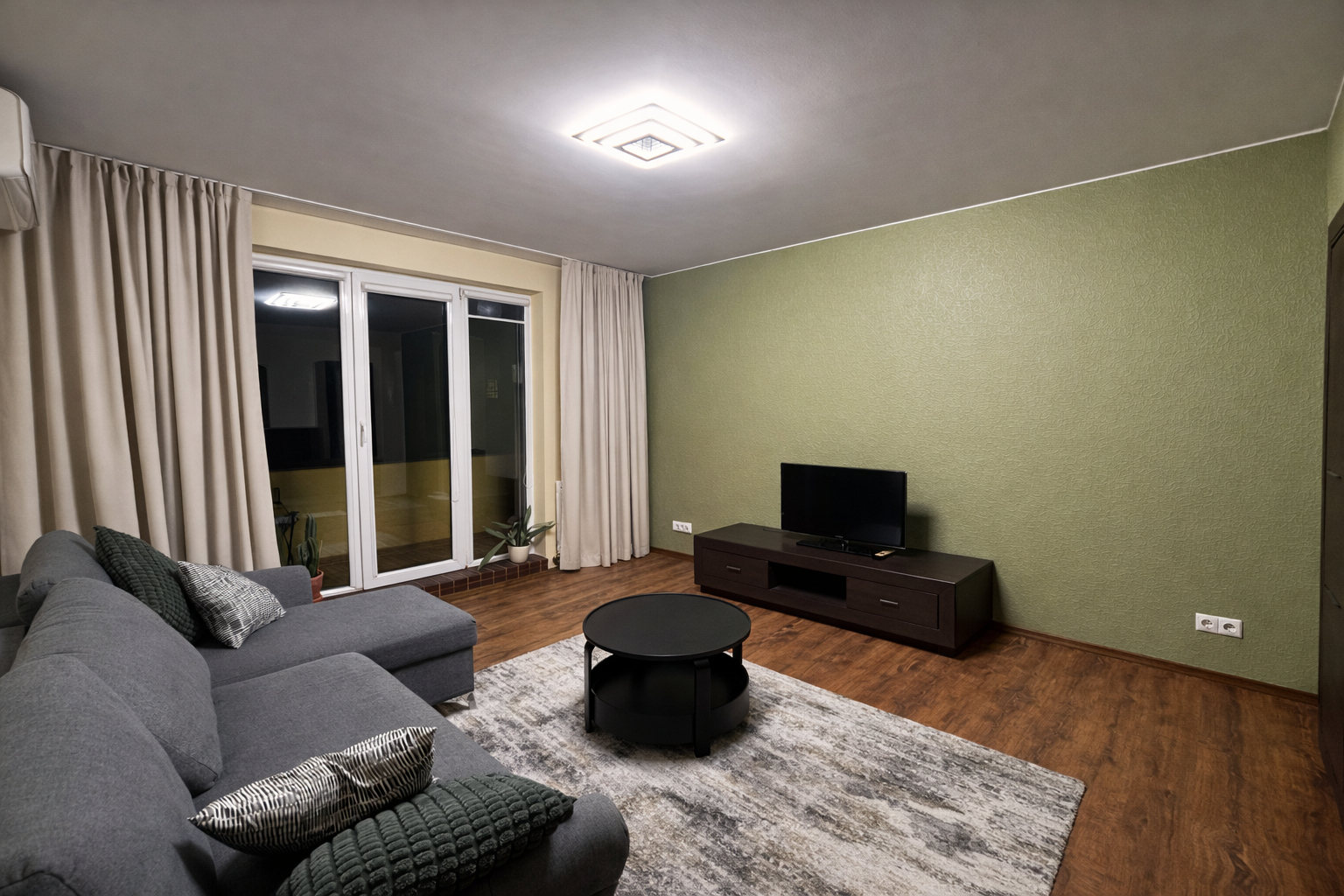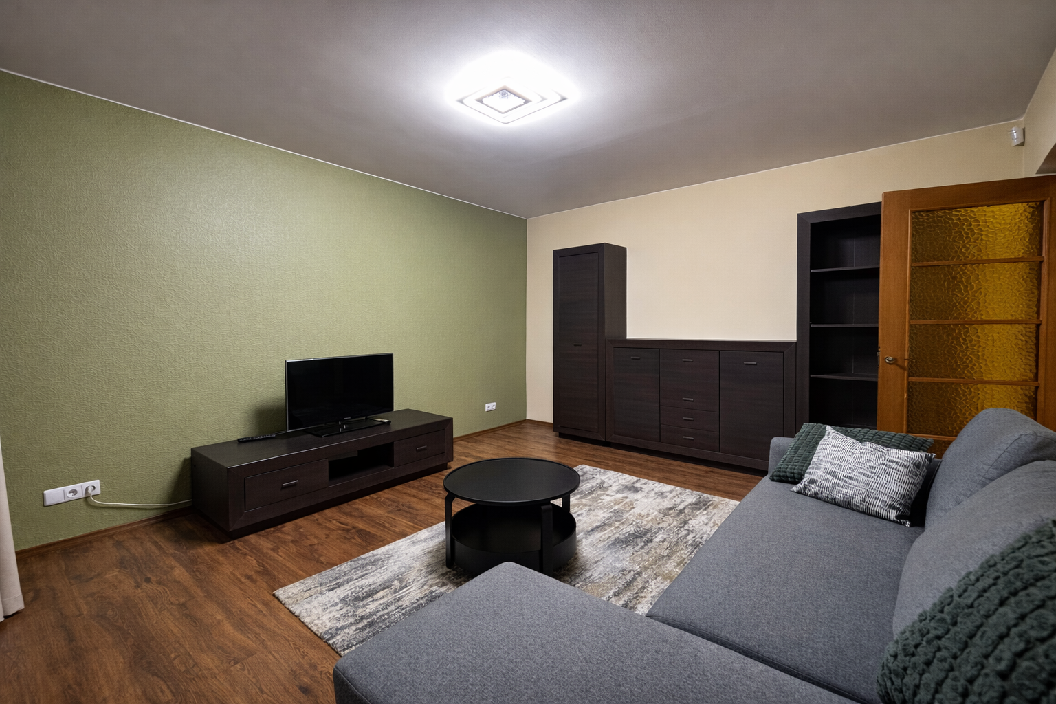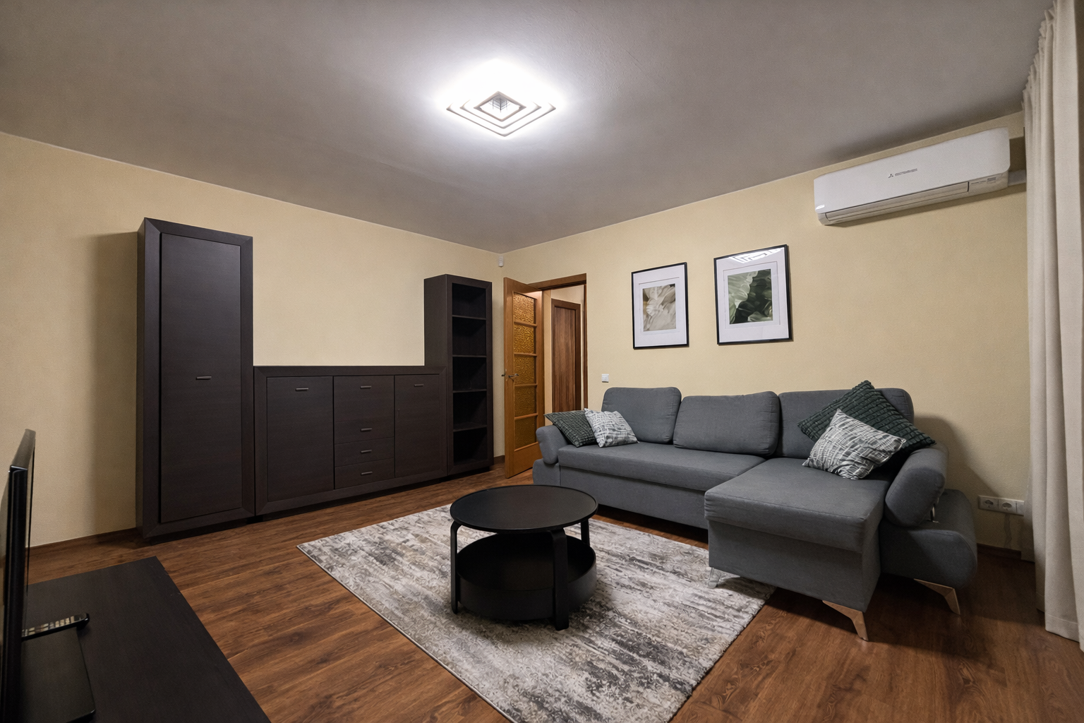 Bute yra visi reikalingiausi baldai, sofa-lova, skalbimo mašina, šaldytuvas su šaldikliu, viryklė, kondicionierius ir t.t.