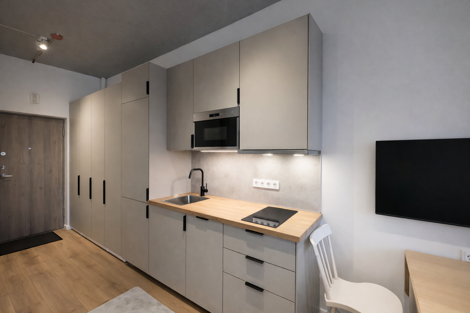 Puikioje vietoje, Naujamiestyje, išnuomojamas 23 kv.m. ploto, 1 kambario ką tik įrengtas butas.