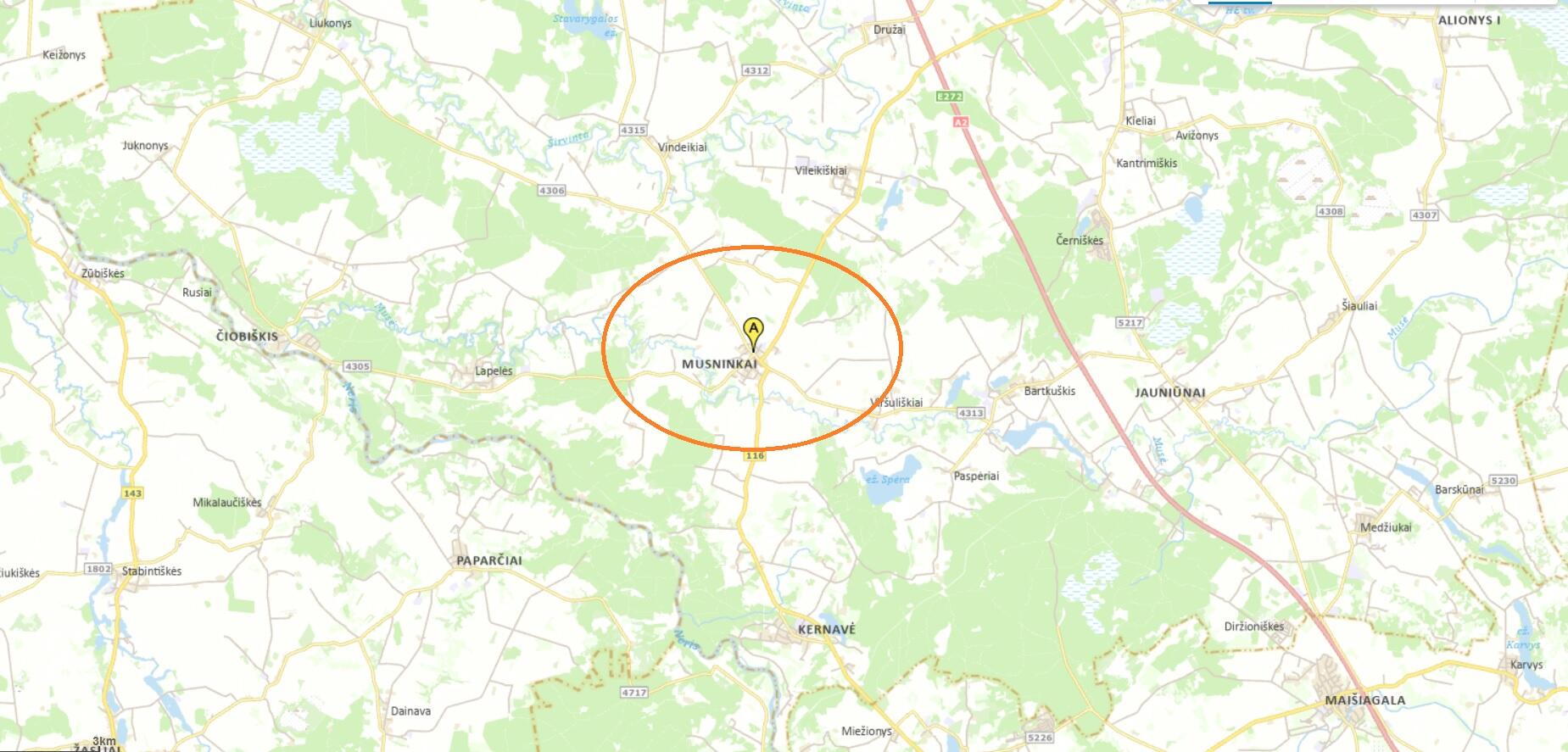 Iki autostrados Vilnius - Panevėžys ~ 23 km.