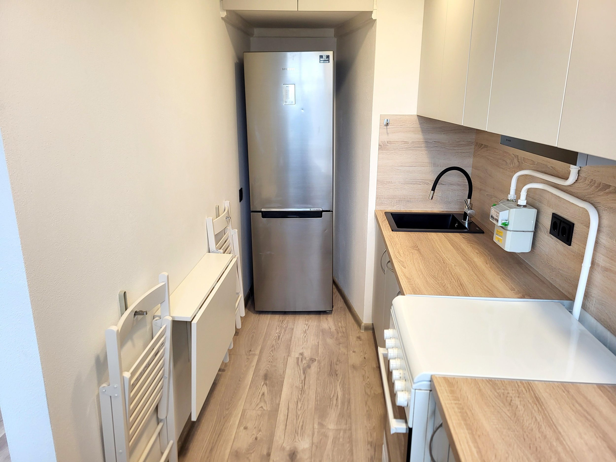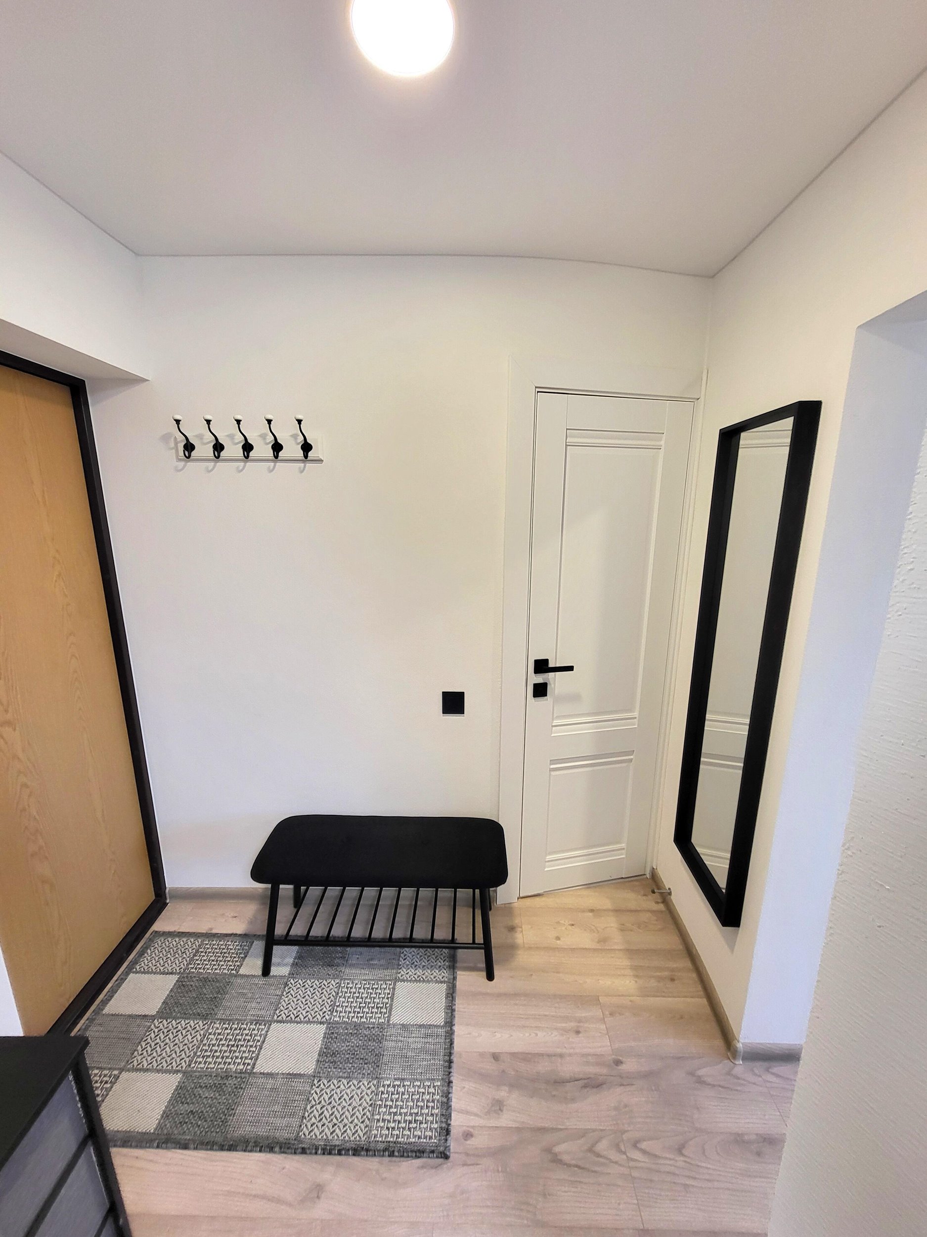 - Miegamasis kambarys (SU SPINTA VEIDRODINĖMIS DURIMIS, MIEGAMOJI LOVA),svetainė, nauji virtuvės baldai.