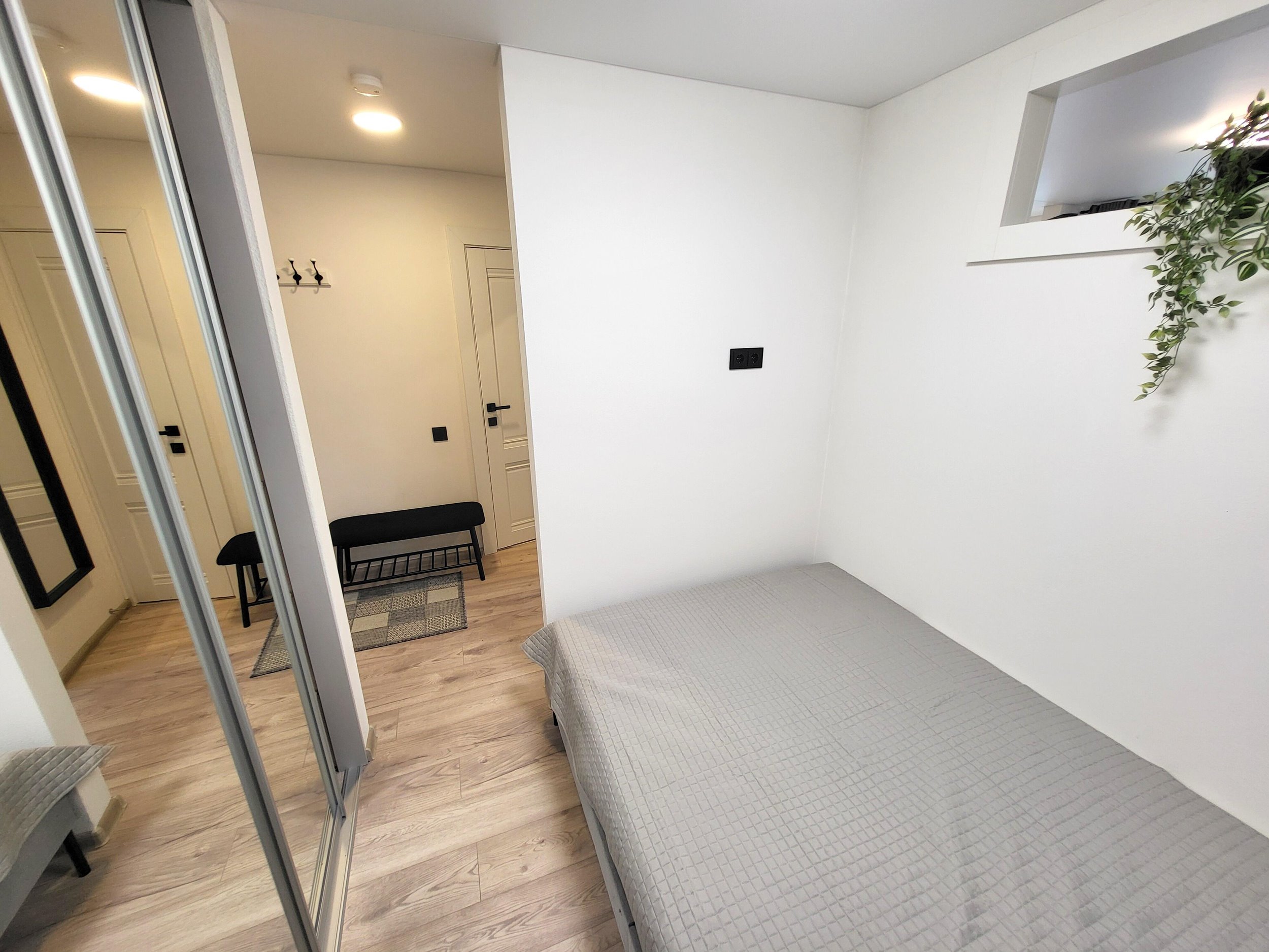 Bute įrengtas 2 kambarys, atskirta miegamojo zona nuo svetaines.
