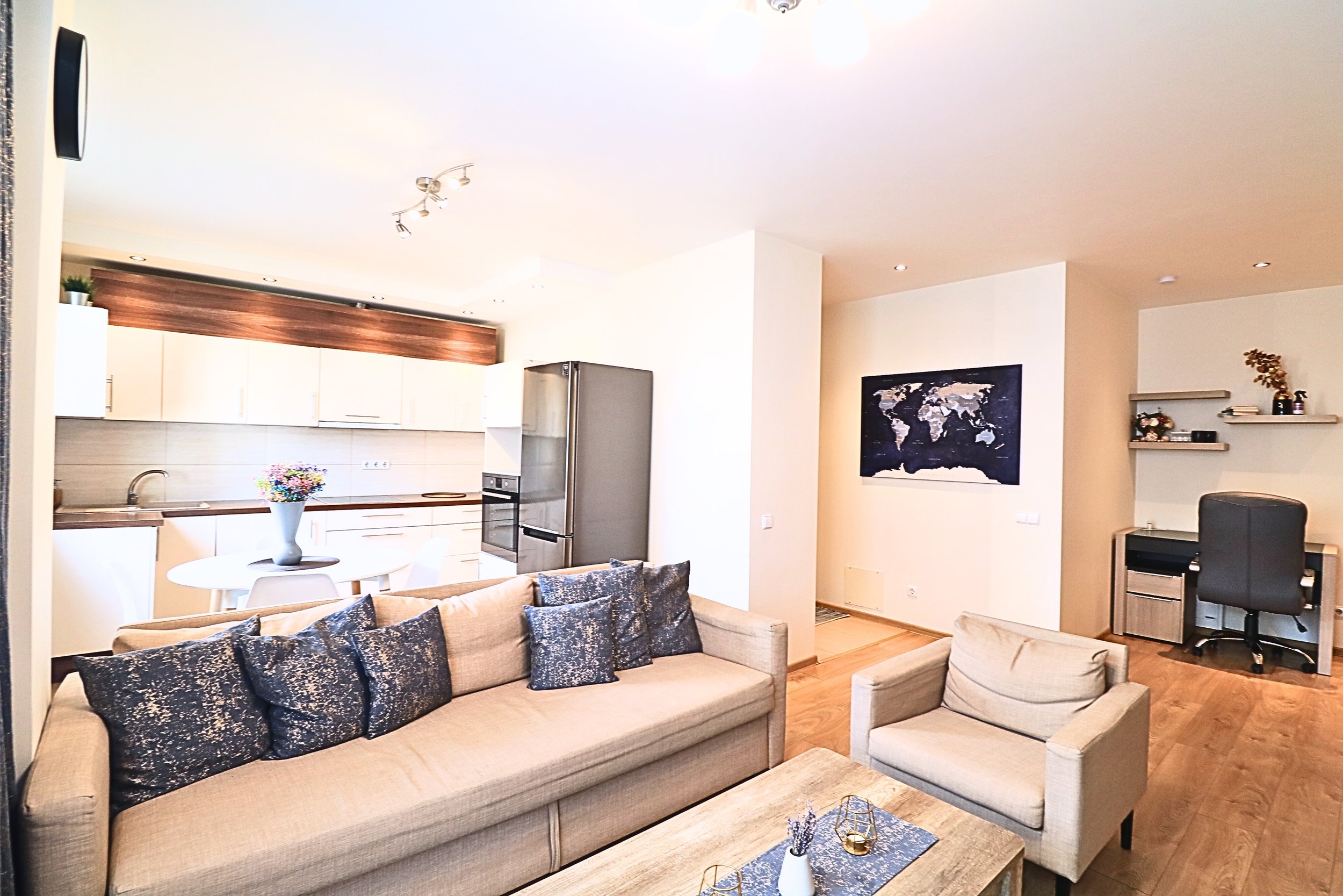 - Butas nuomojamas su visais reikalingais baldais ir buitine technika