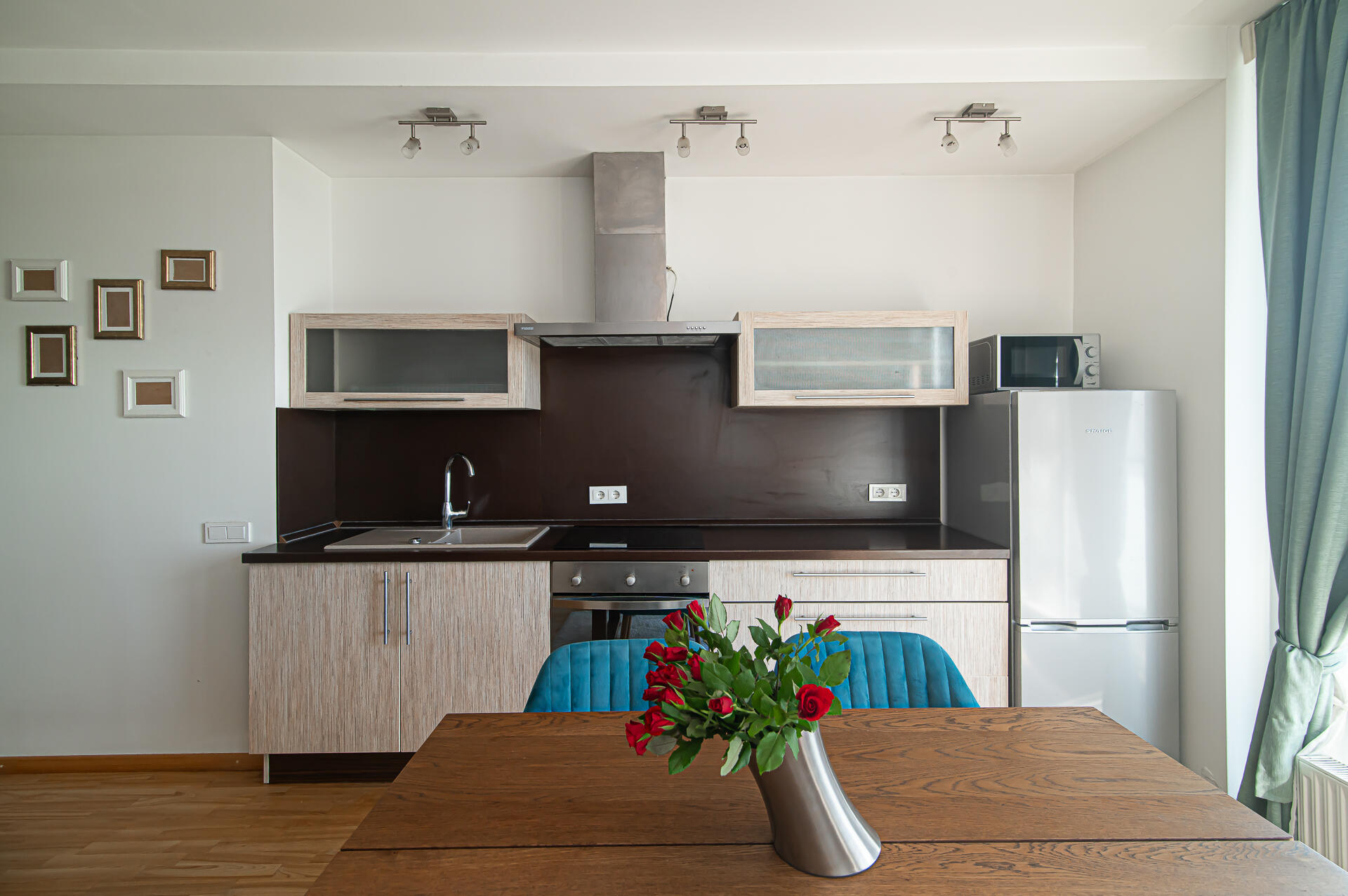 - Puikus susisiekimas su miesto centru ir kitais rajonais tiek automobiliu, tiek viešuoju transportu, netoli viešojo transporto stotelės.