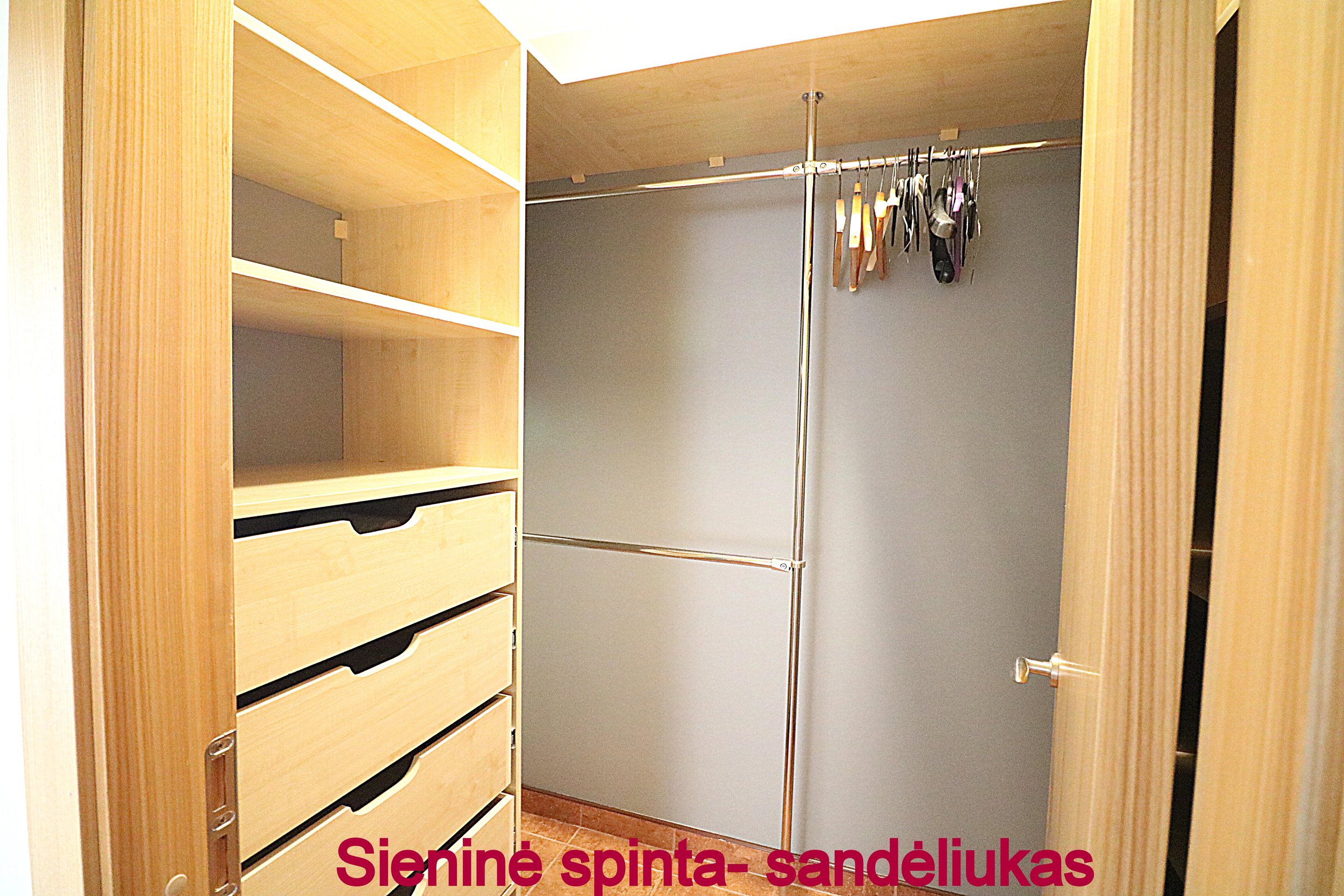 • Bute yra erdvi sieninė spinta-sandėliukas.