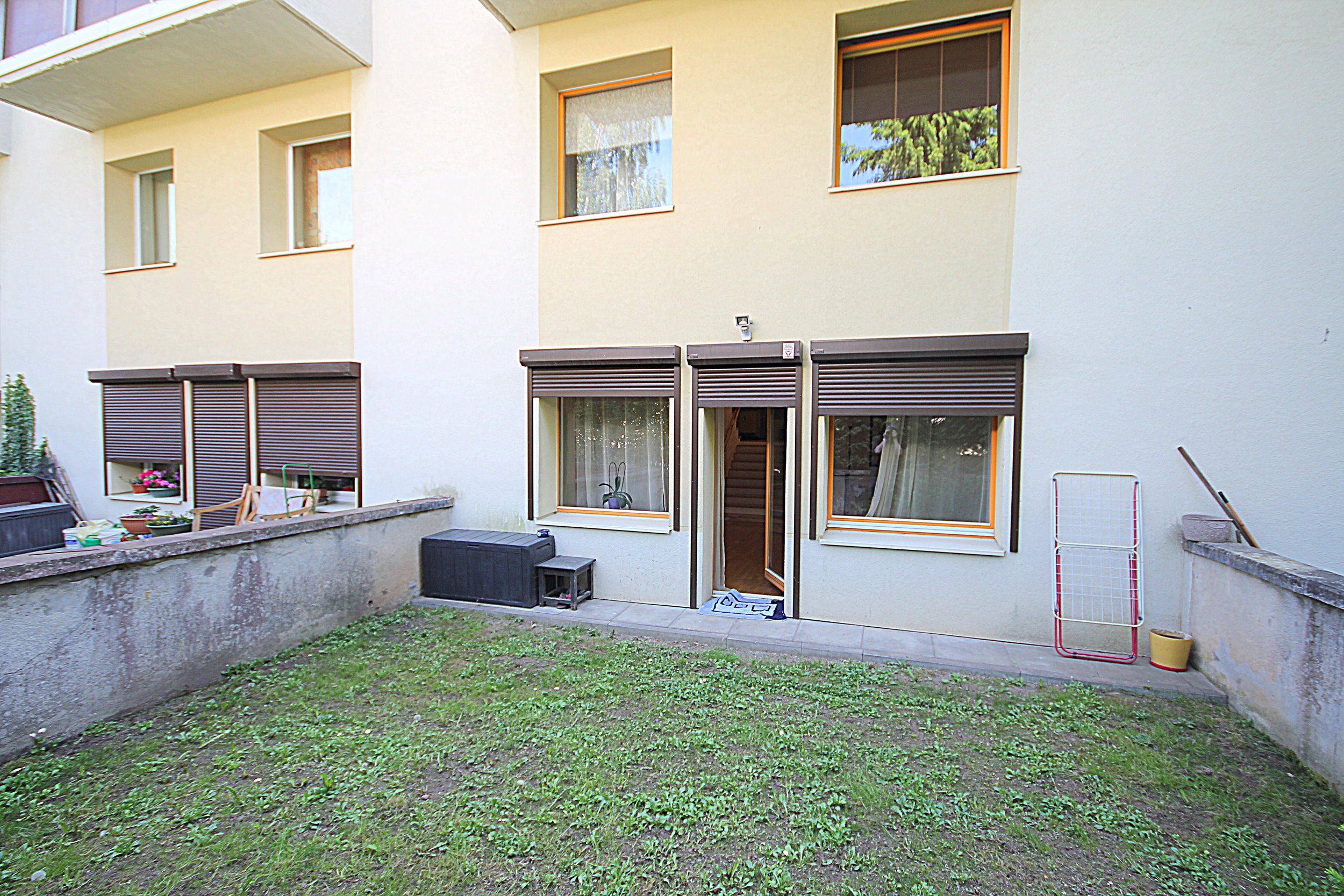 Sutvarkyta aplinka: asfaltuotas privažiavimas, išpuoselėta veja vidiniame kieme.