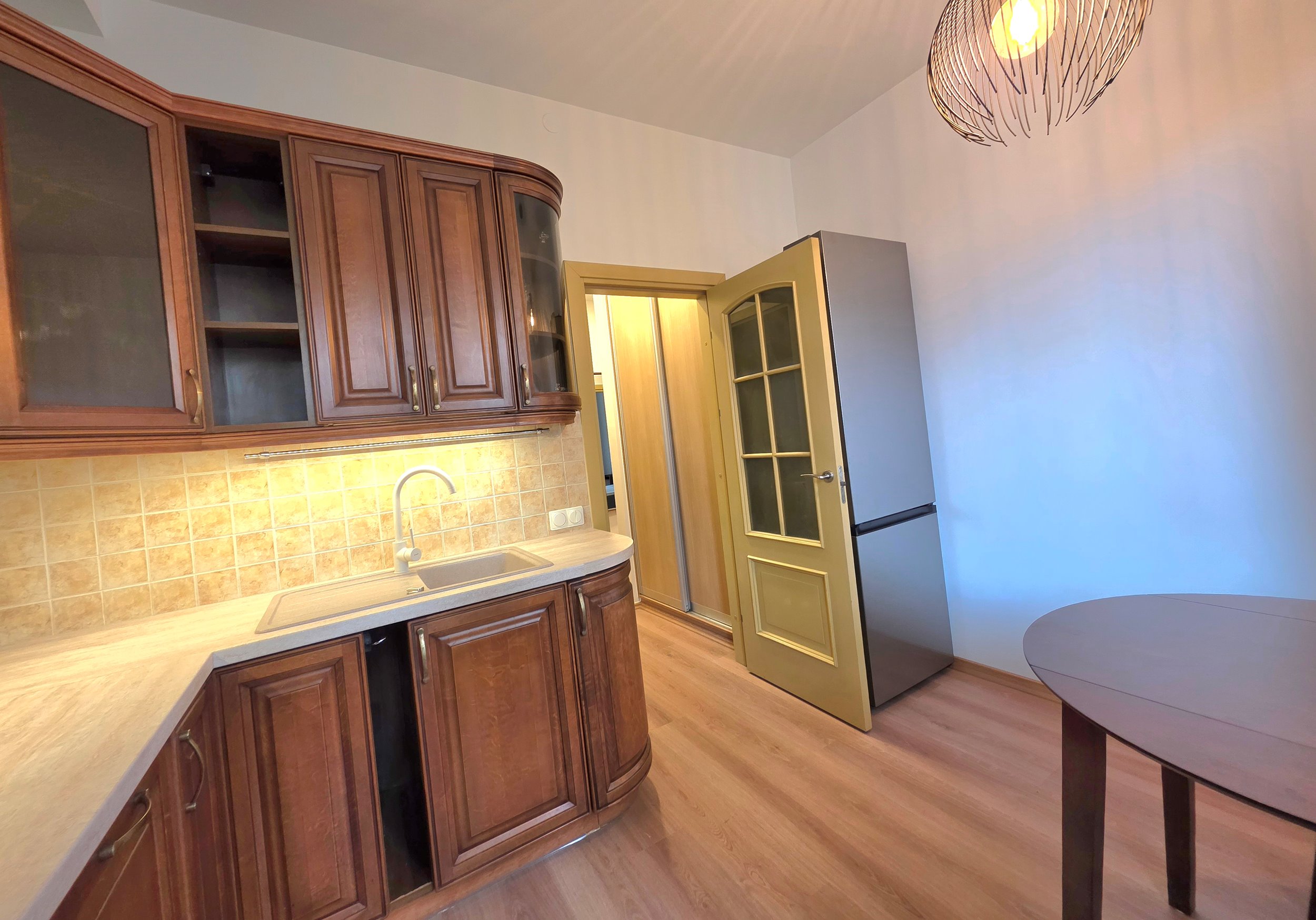 Bute puikiai apgalvotos smulkmenos Jūsų buitį pavers komfortiška. Pvz., paveldėtas virtuvės komplektas atnaujintas šiuolaikinėmis priemonėmis (stalčiuose įdėti bėgeliai, įrengtas apšvietimas).