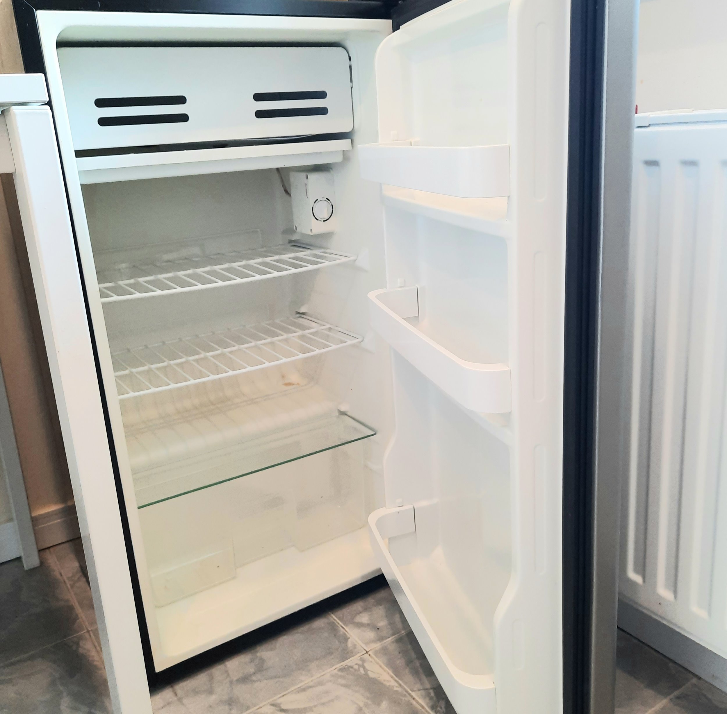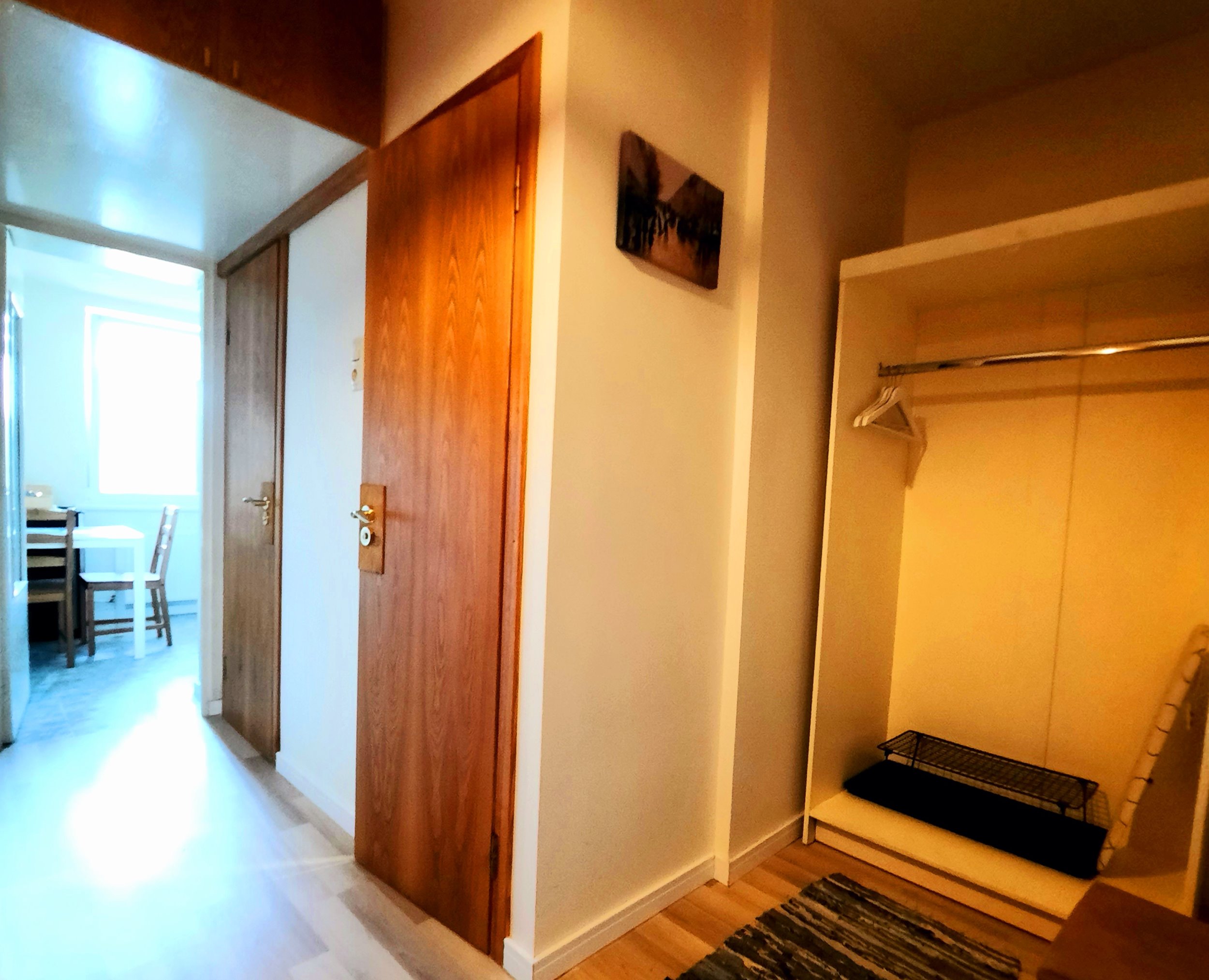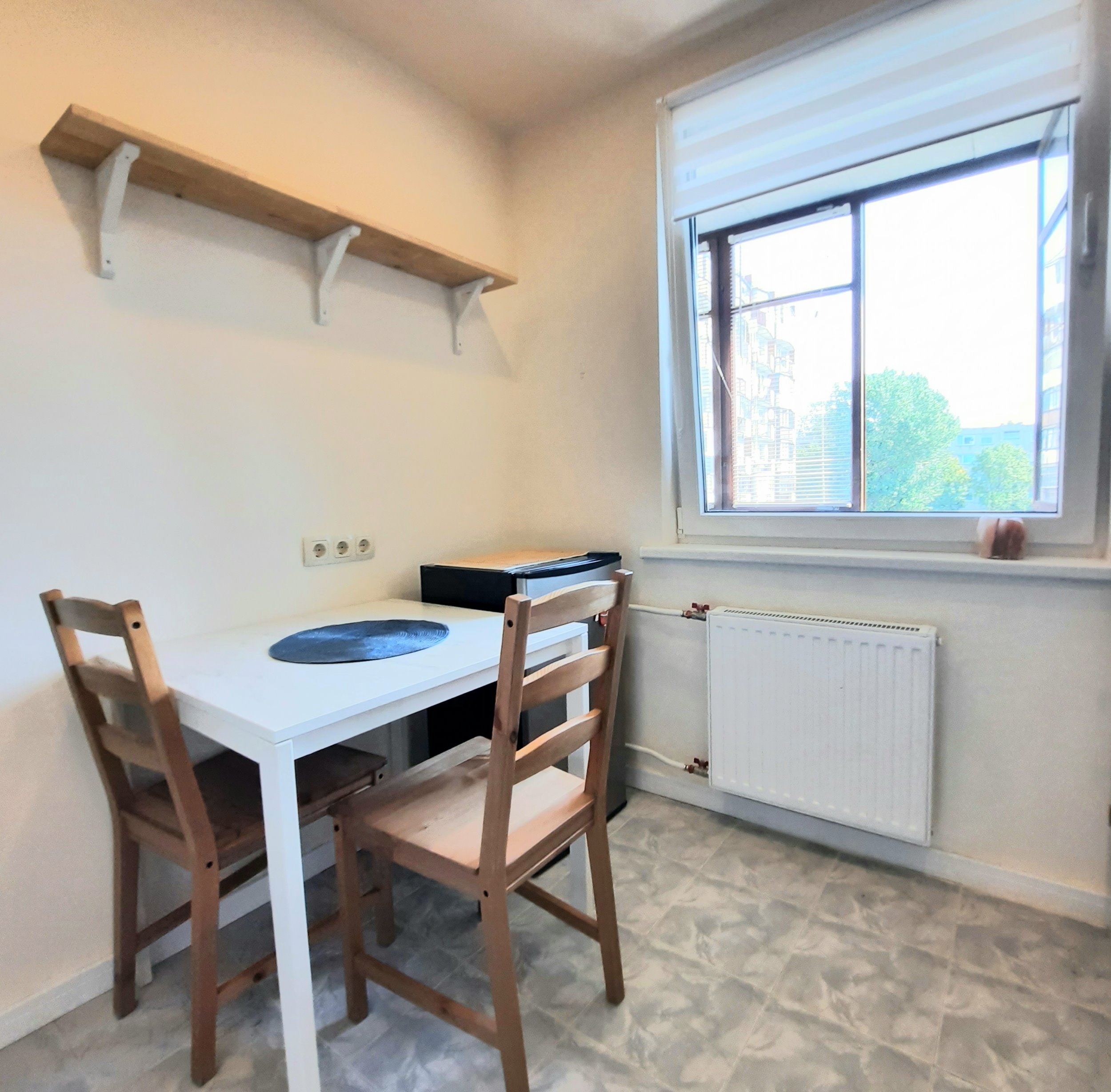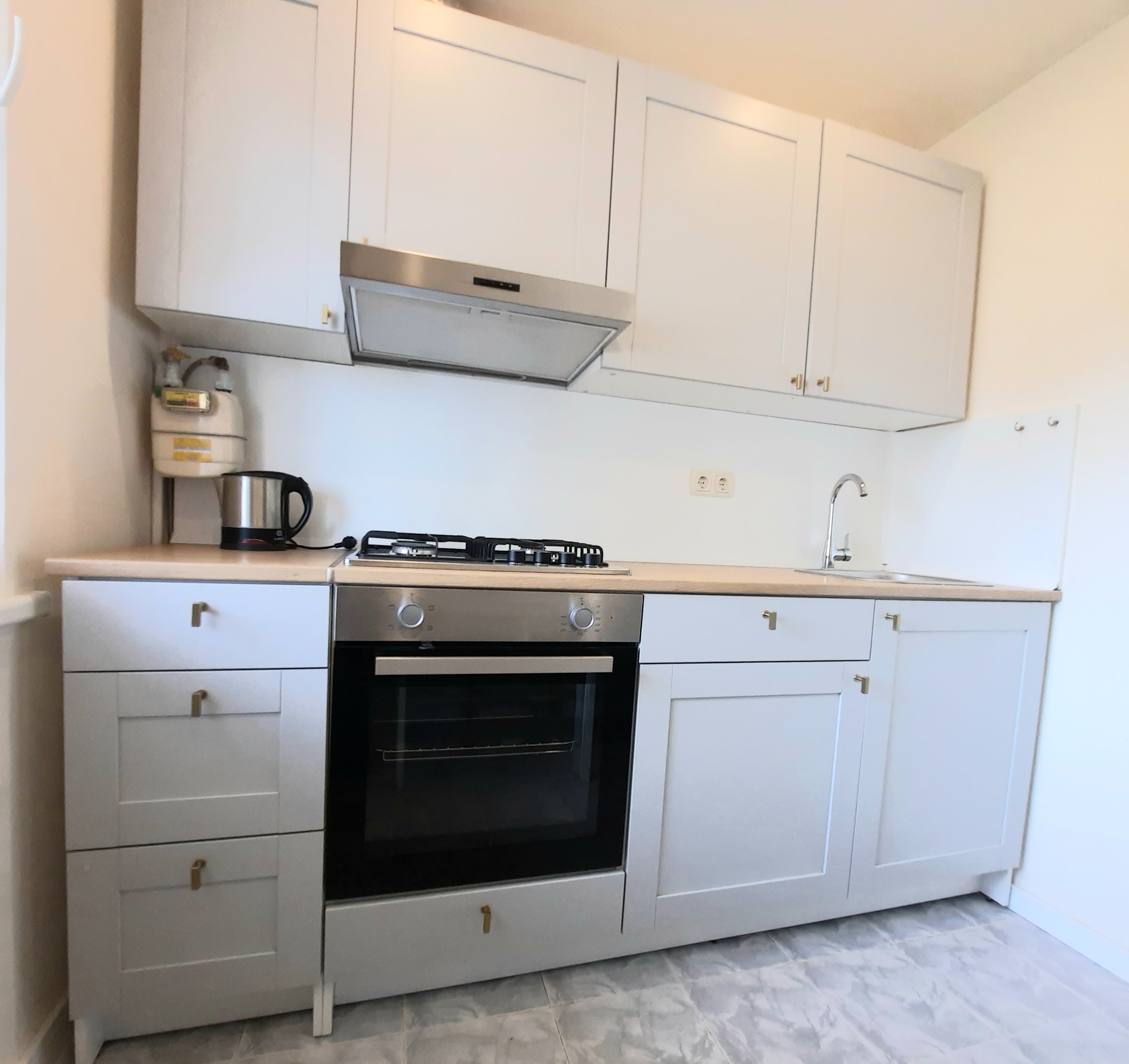 • Virtuvė atskirta nuo kambario, optimaliai įrengta, su buitine technika, šaldytuvas nedidelis, bet su šaldikliu.