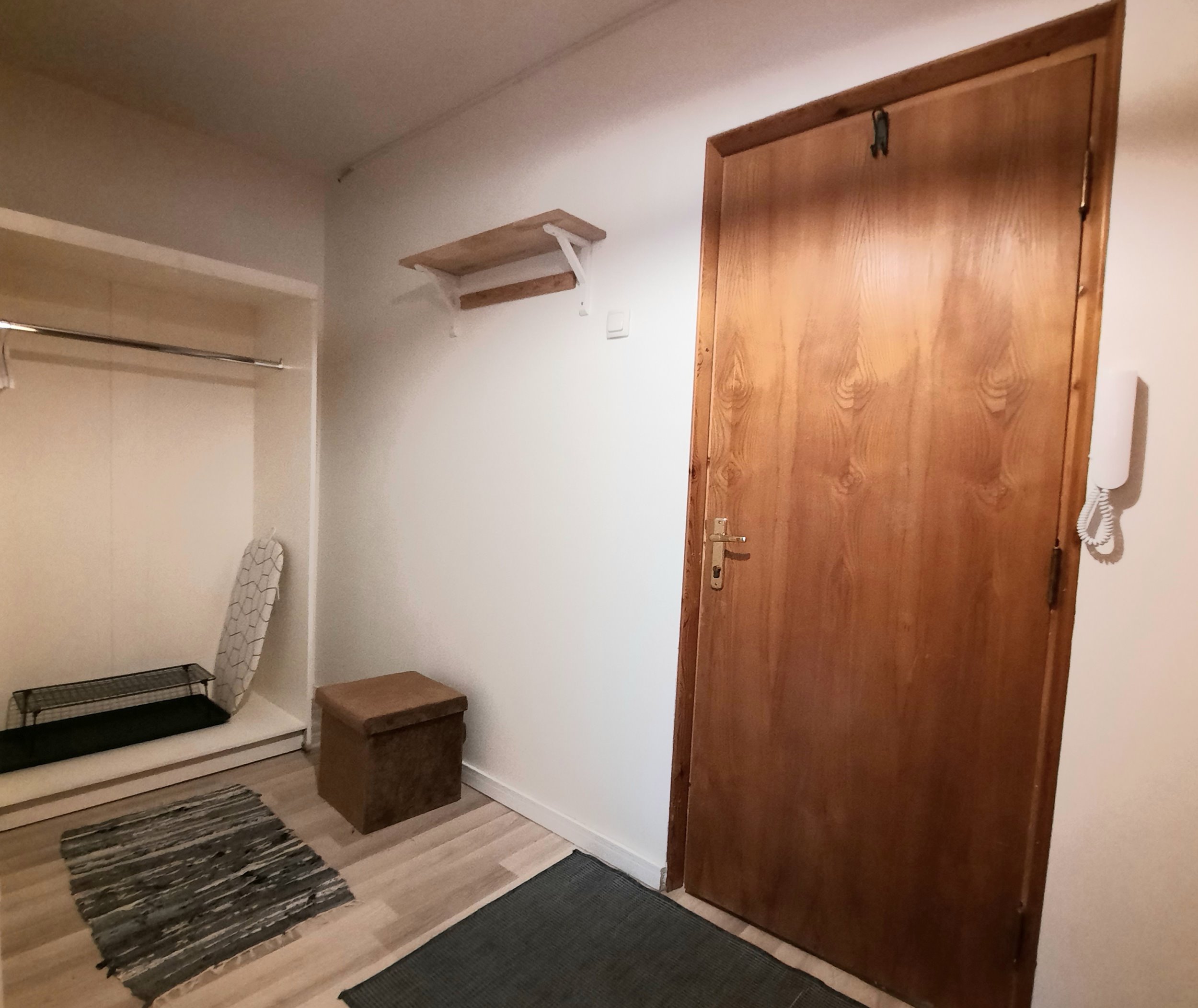 • Yra didelės, funkcionalios spintos (prieškambaryje).