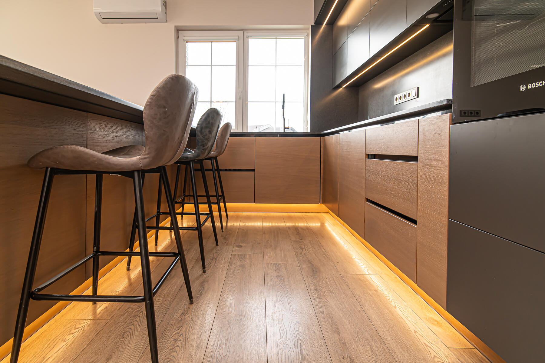 Šildymo sistema: oras-vanduo, grindynis šildymas visame name