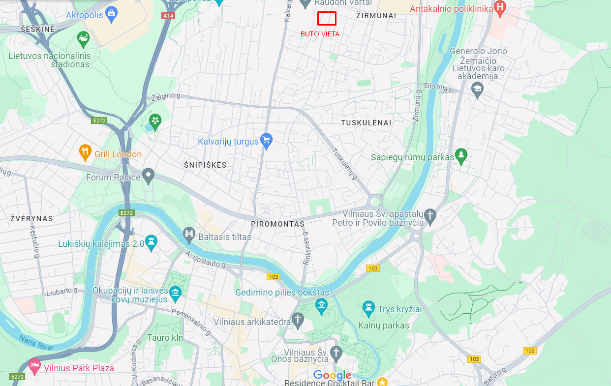 7 min. pėščiomis iki prekybos centro Banginis, kuriame yra sporto klubas, parduotuvė Senukai, IKI parduotuvė, kavinės ir t.t.