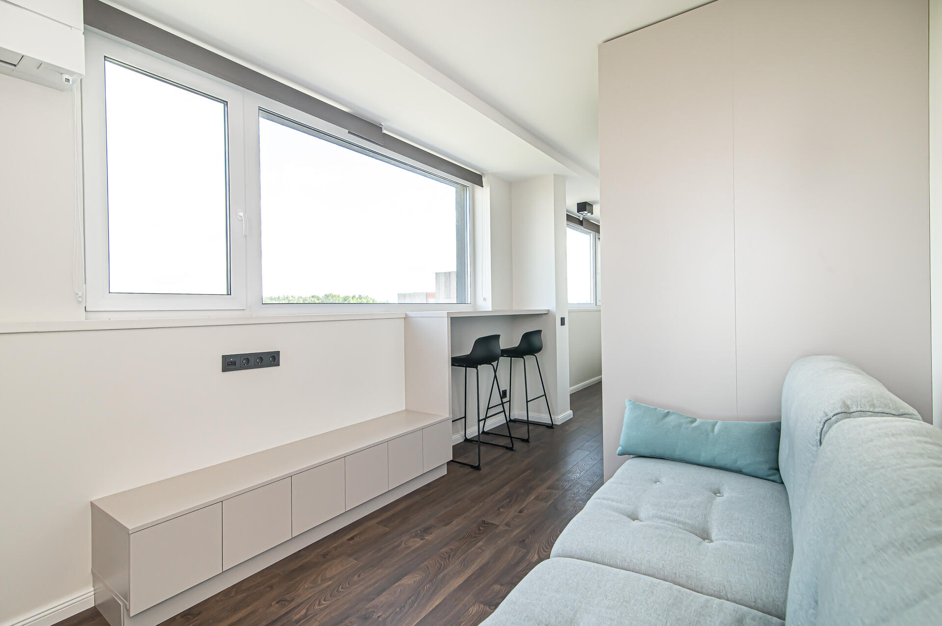 - Funkcionalios panaudojimo galimybės 2 kambarių šiuolaikiškam butui.
