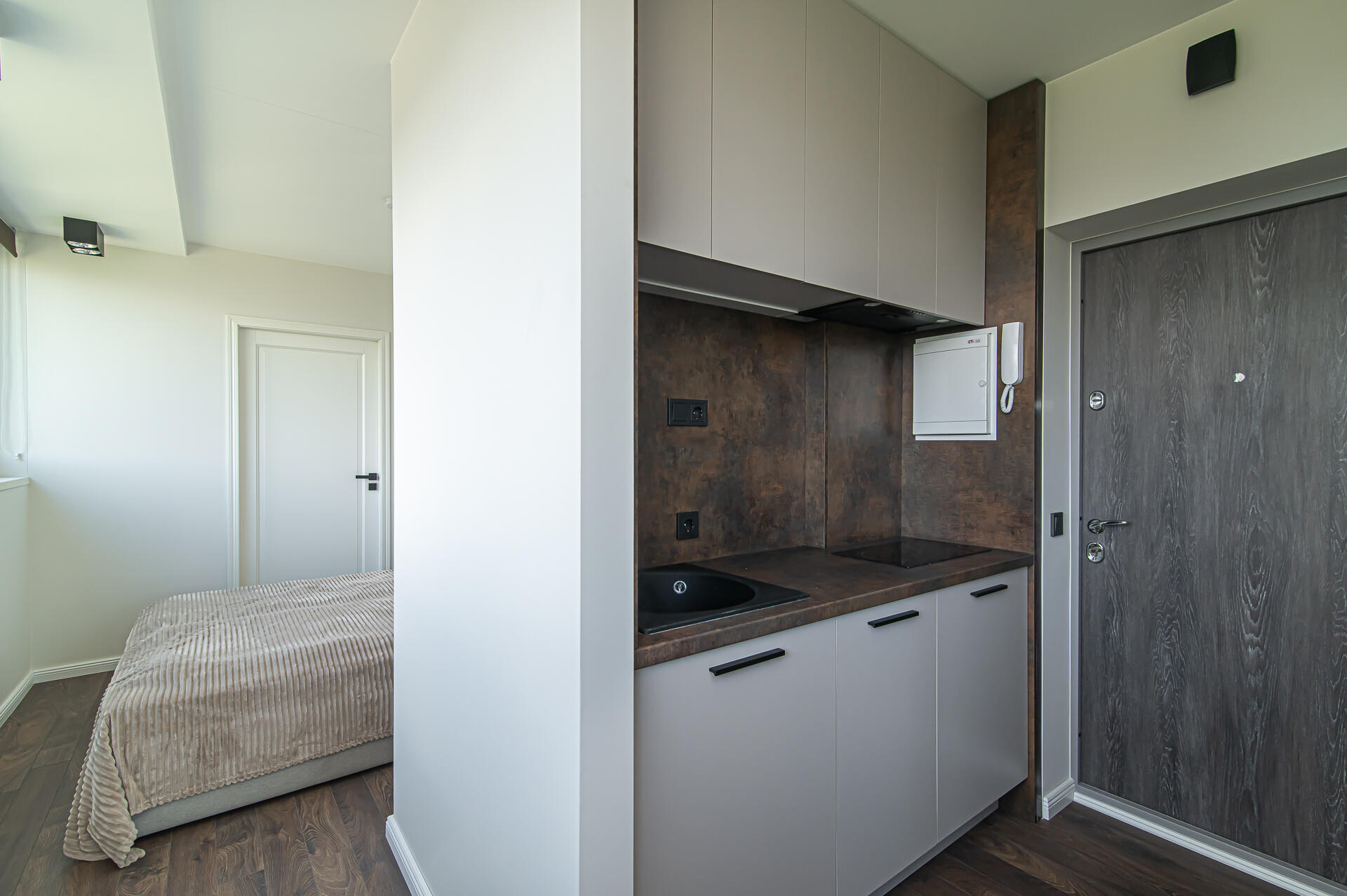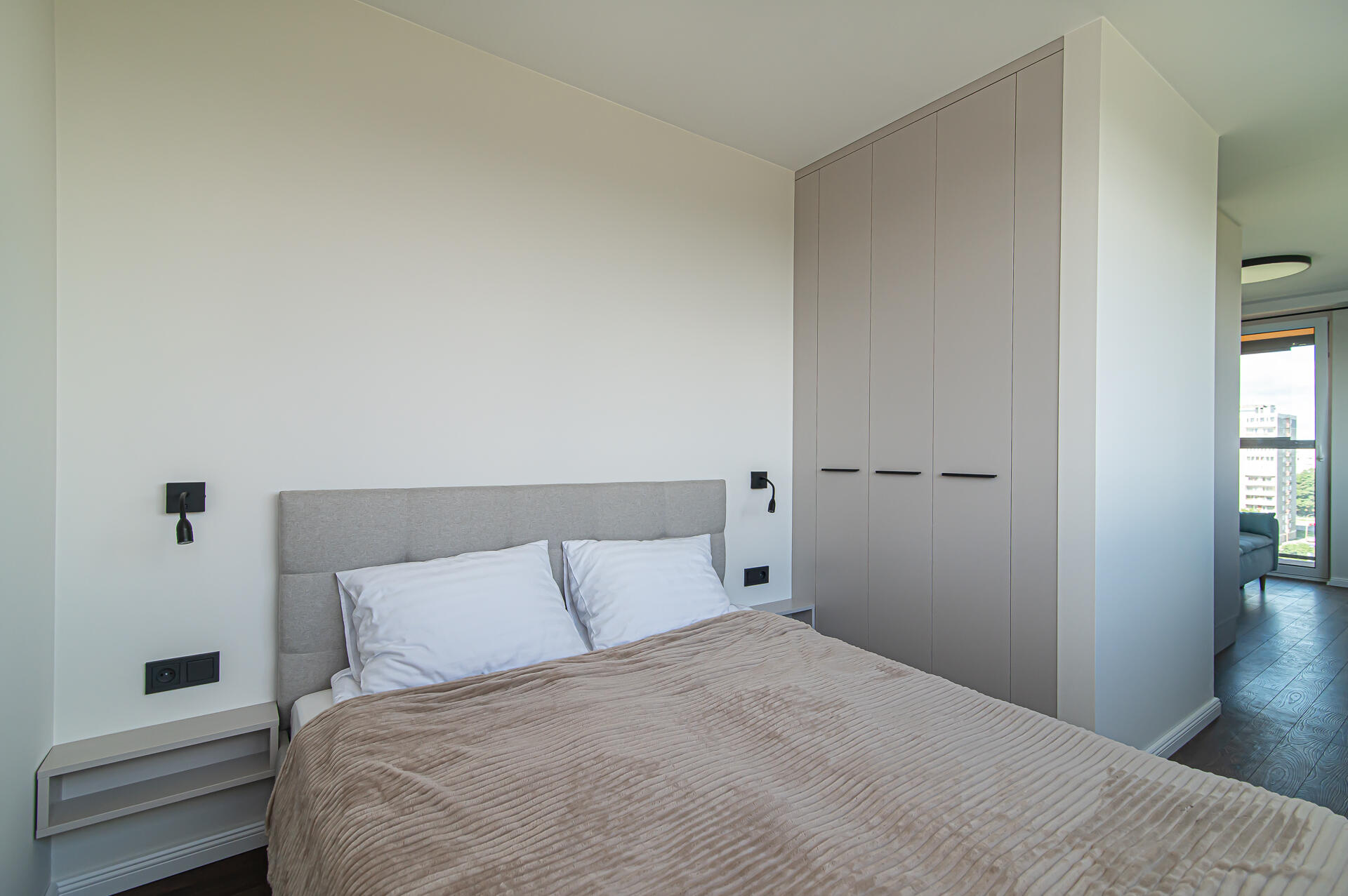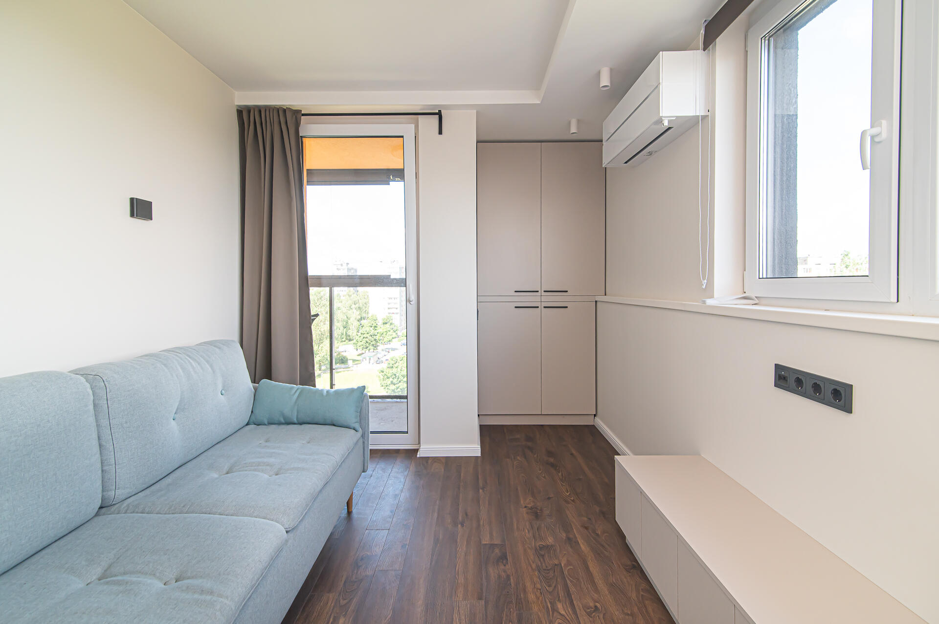 - Bute yra visi reikalingiausi baldai (lova, sofa, skalbimo mašina, kaitlentė, orkaitė, indaplovė, šaldytuvas)
