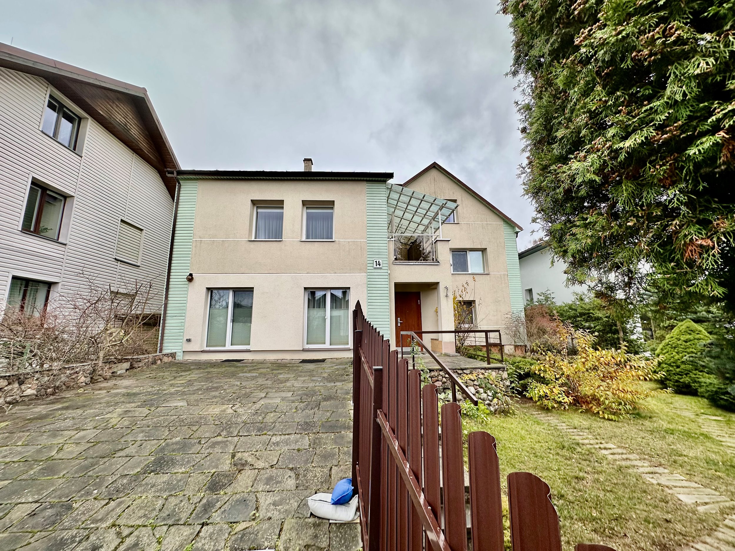 Aplink namą yra daug automobilio parkavimo vietų.