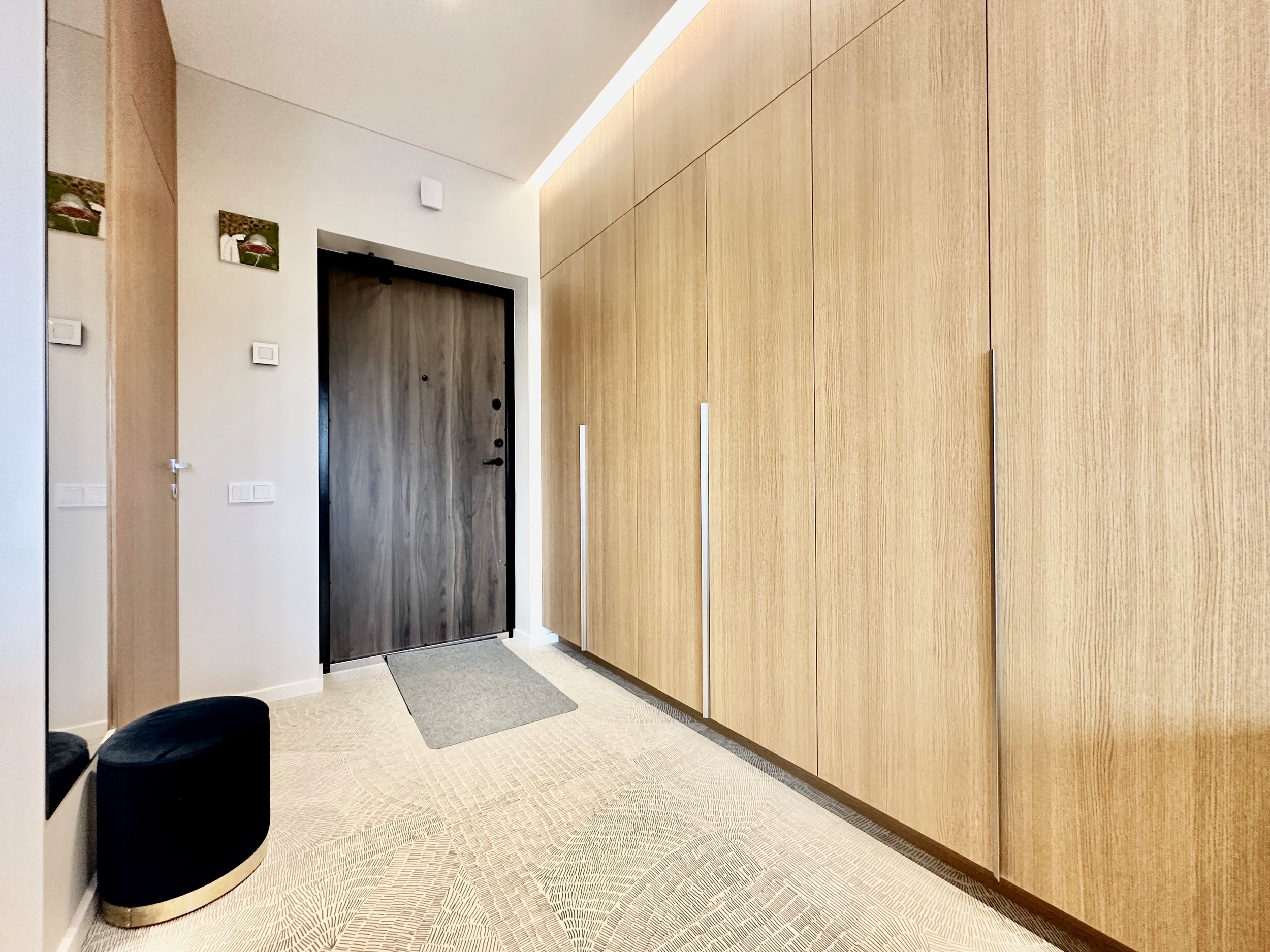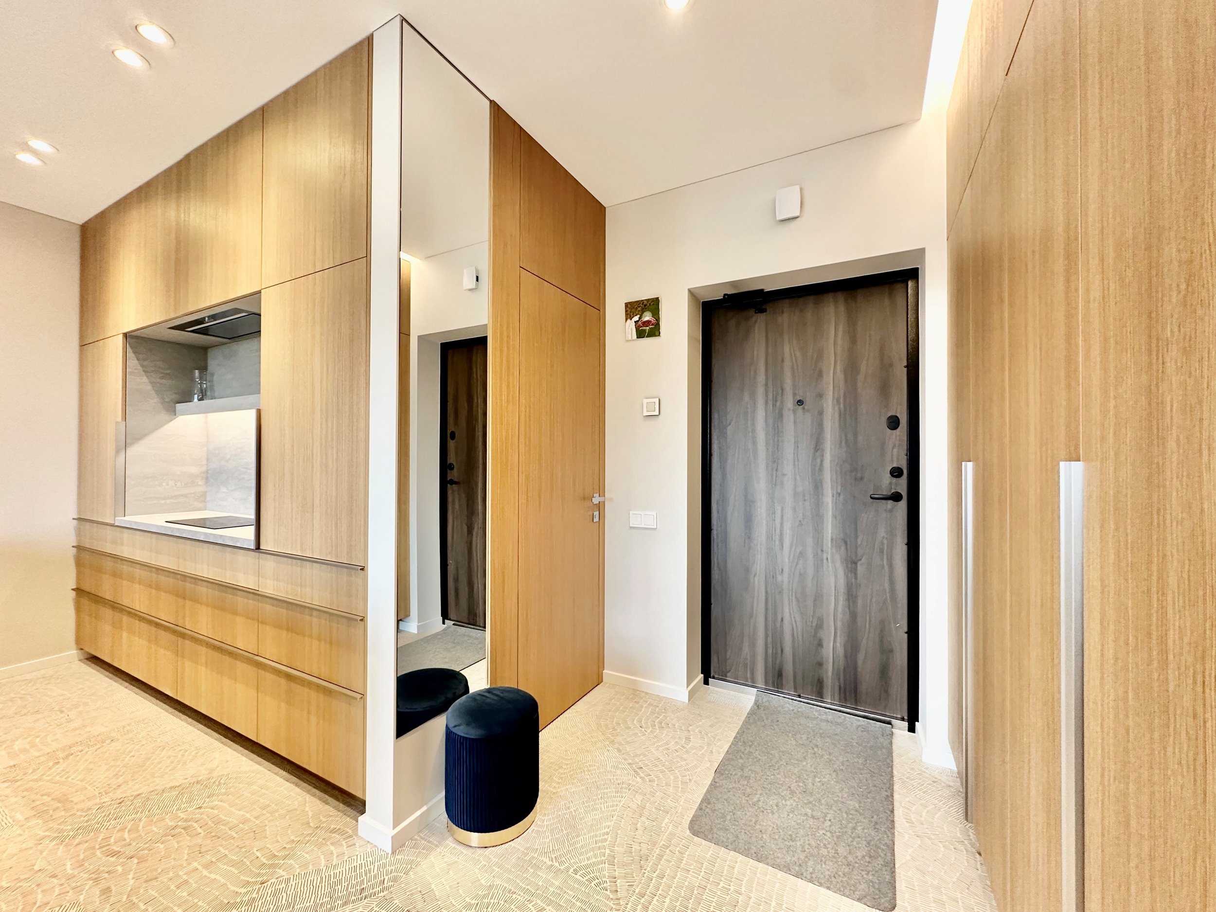 Bute yra visi reikalingiausi baldai: skalbimo mašina, džiovyklė, indaplovė, šaldytuvas su šaldikliu, kaitlentė ir t.t.