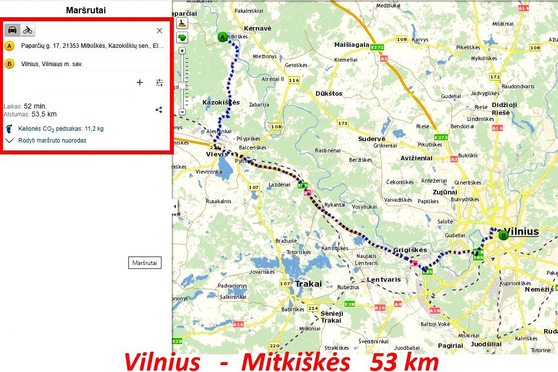 The village of Mitkiškės is approximately 7 km north of Kazokiškės, on the left bank of Neris.