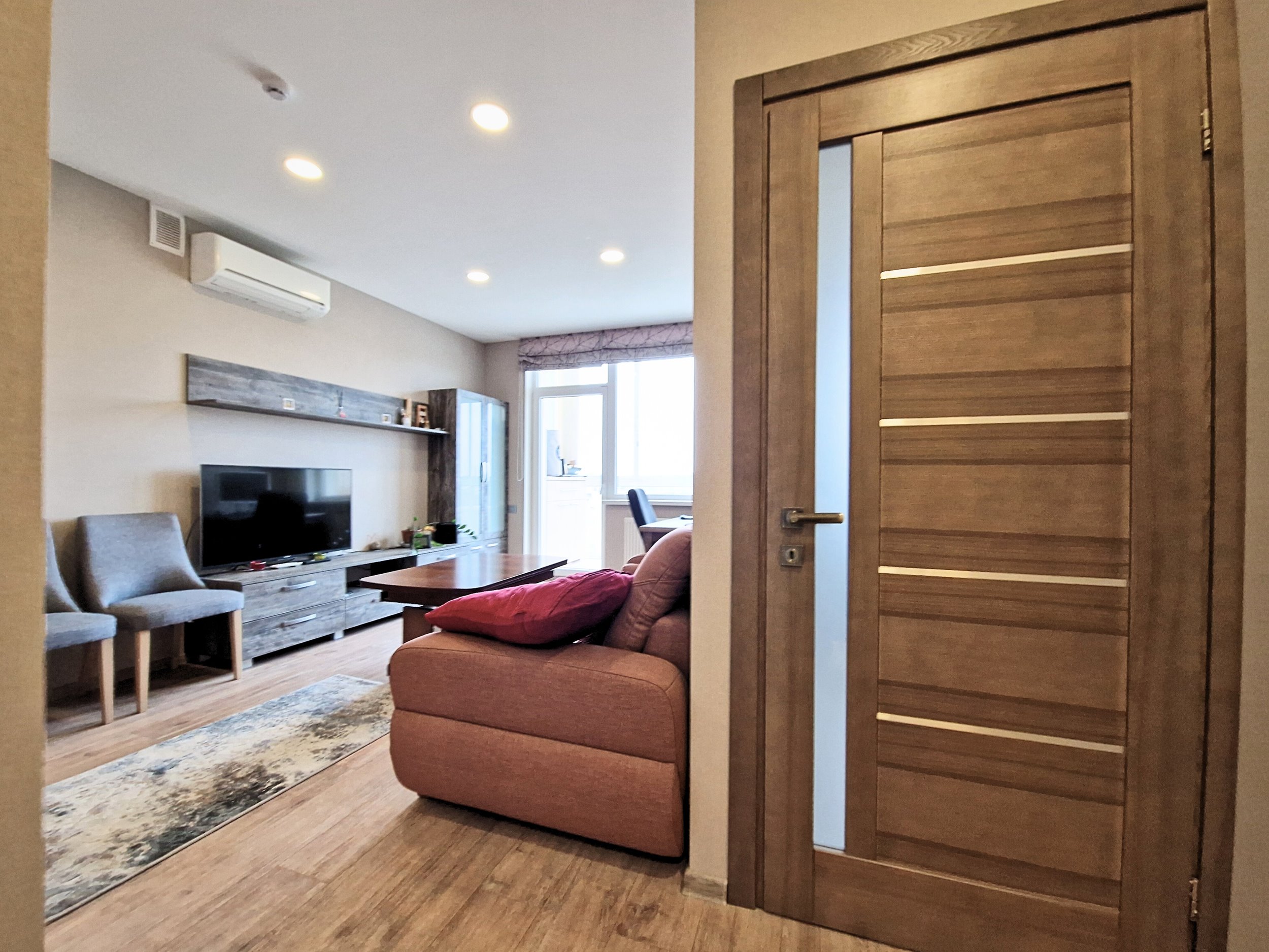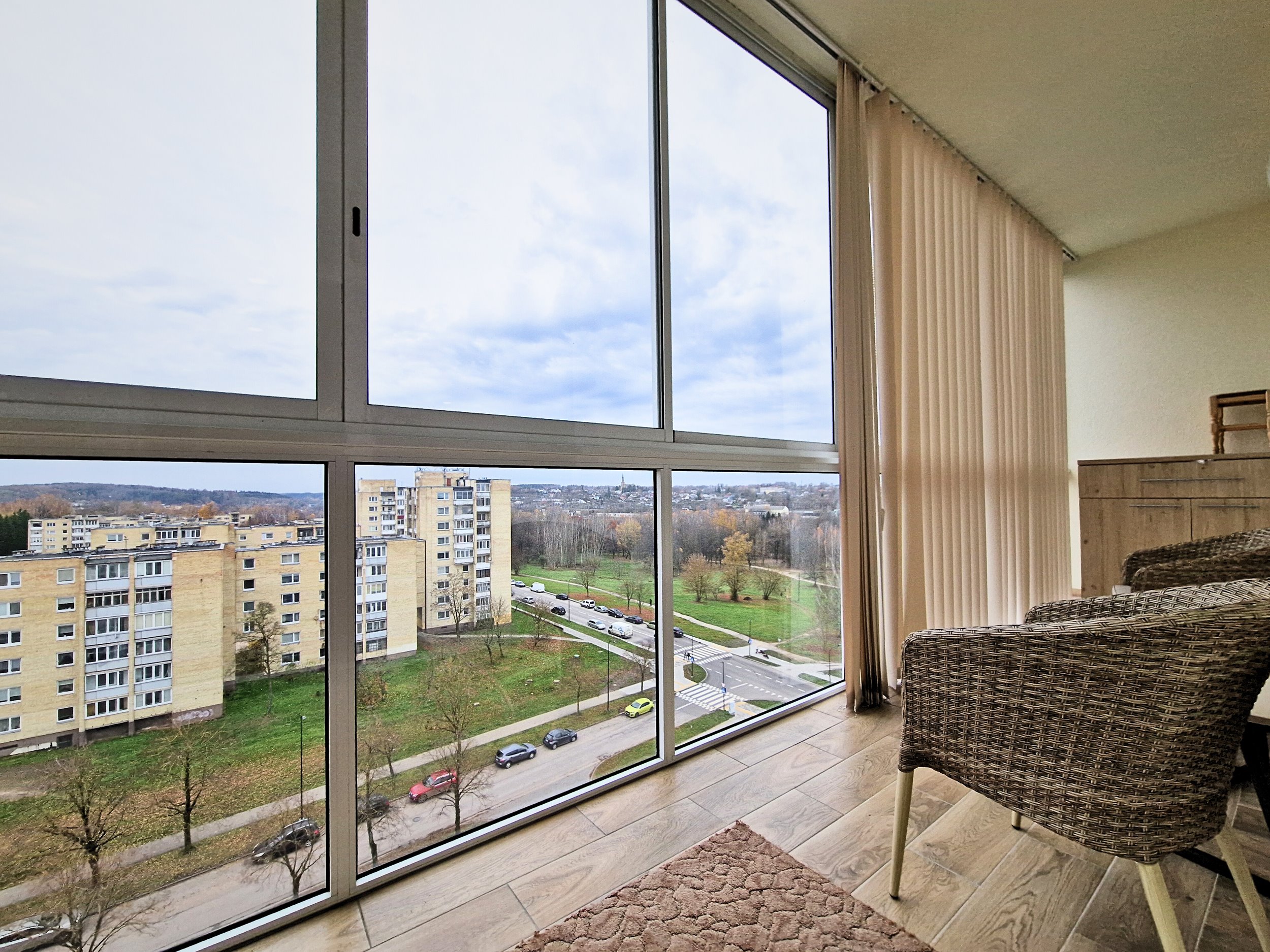 Butas šviesus, su puikiu vaizdu pro langus.