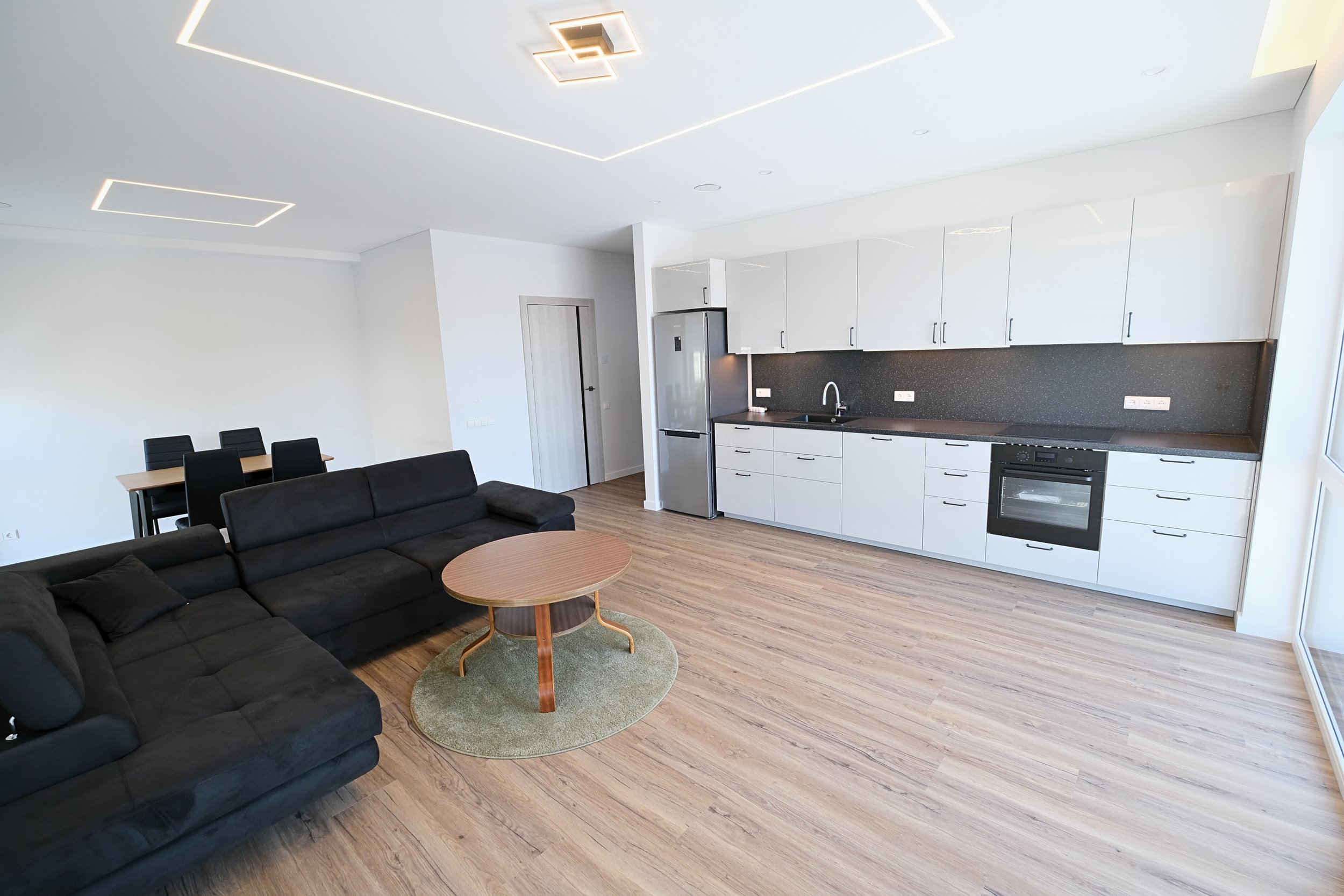 - Svetainė sujungta kartu su virtuvės zona;