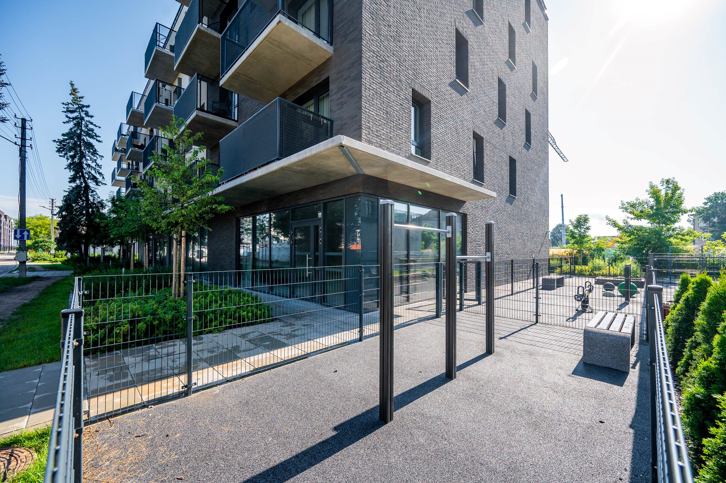 Netoliese kavinės, biurai, sporto klubai ir žalieji plotai.