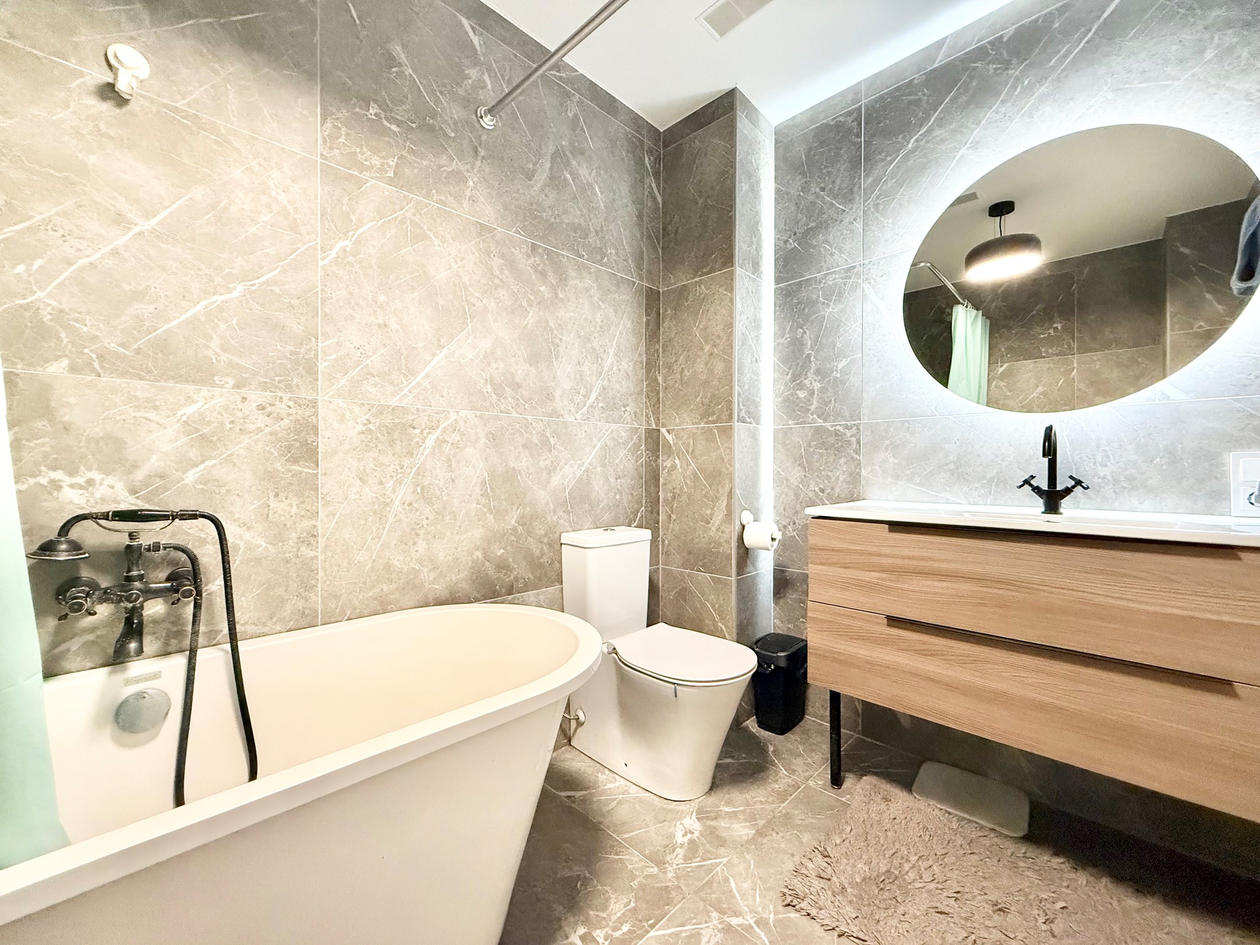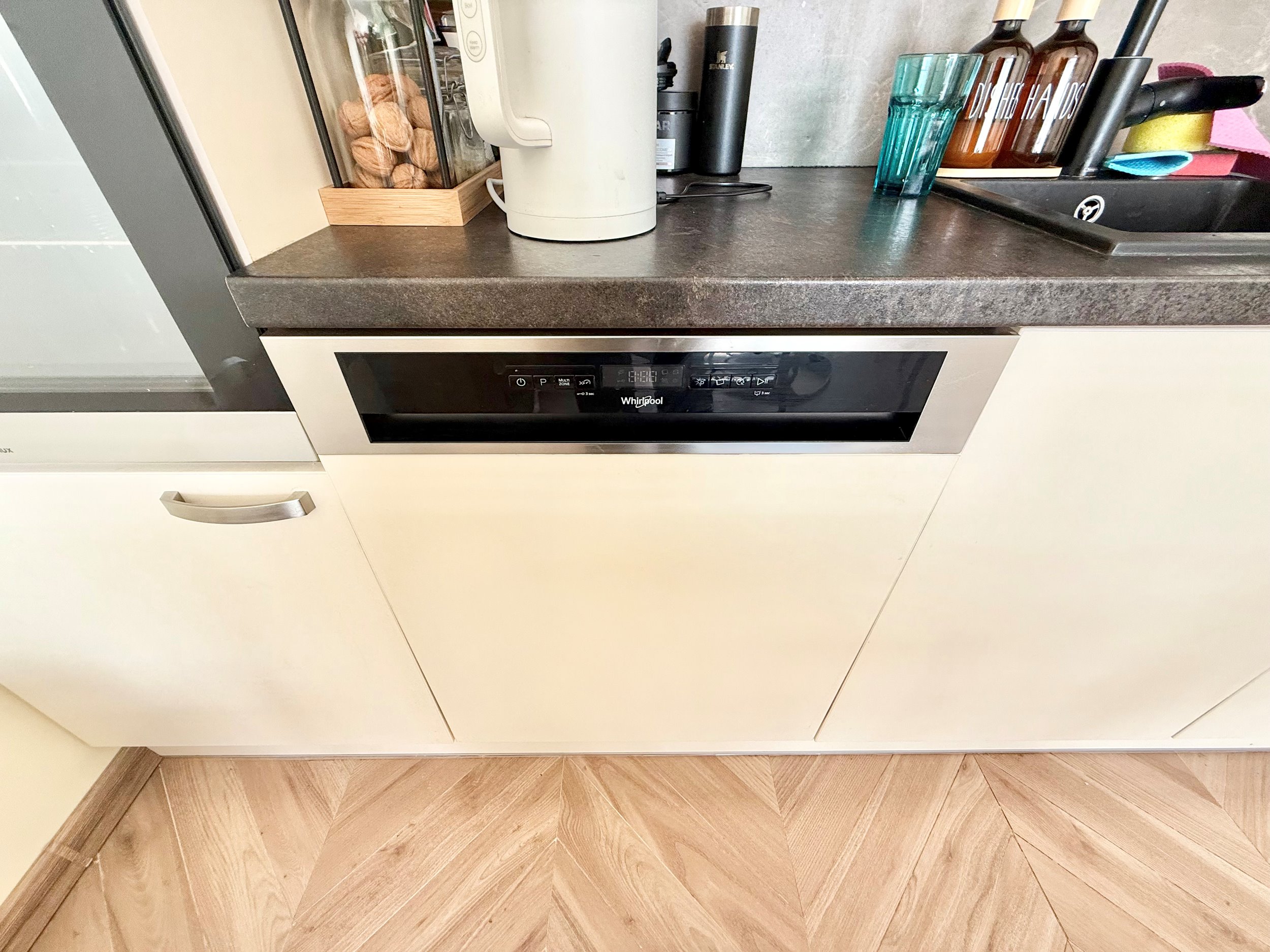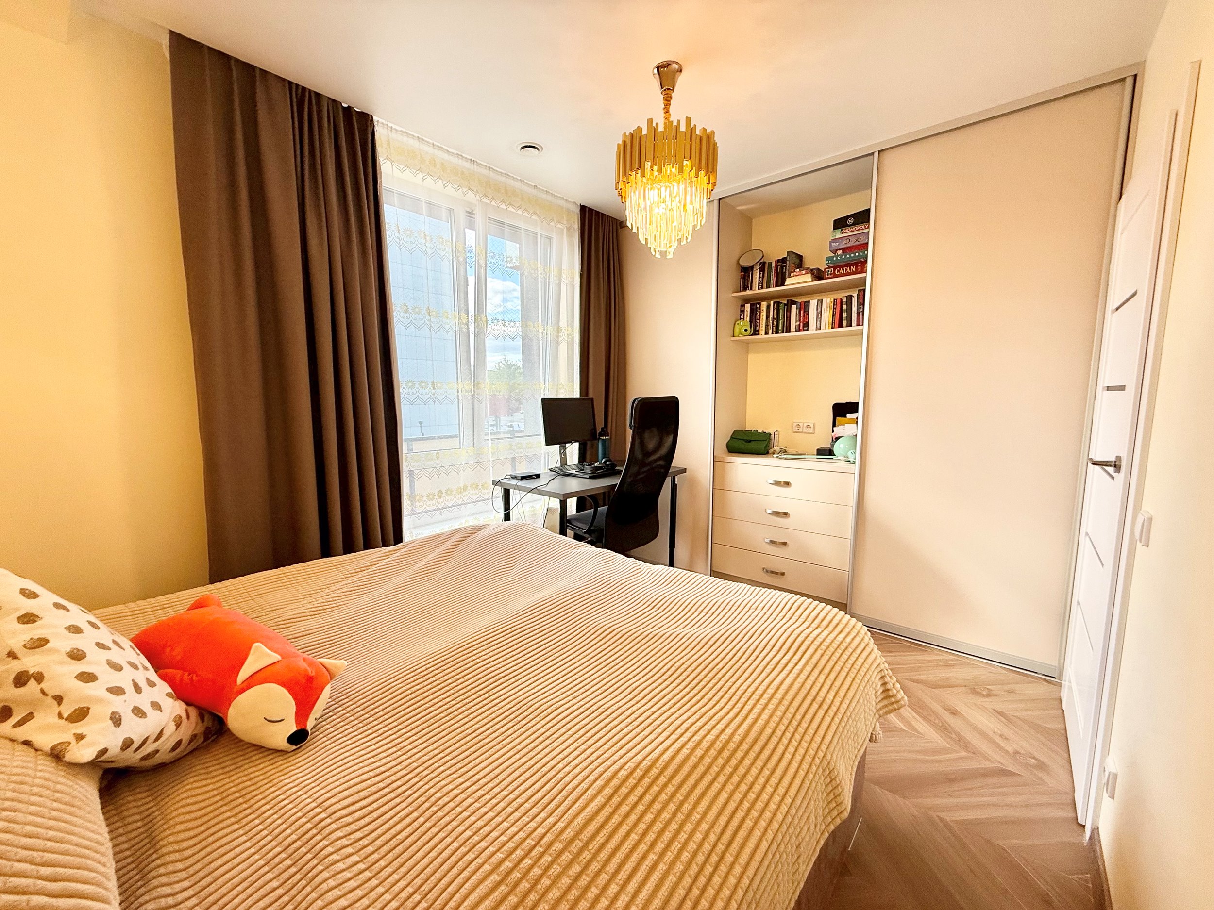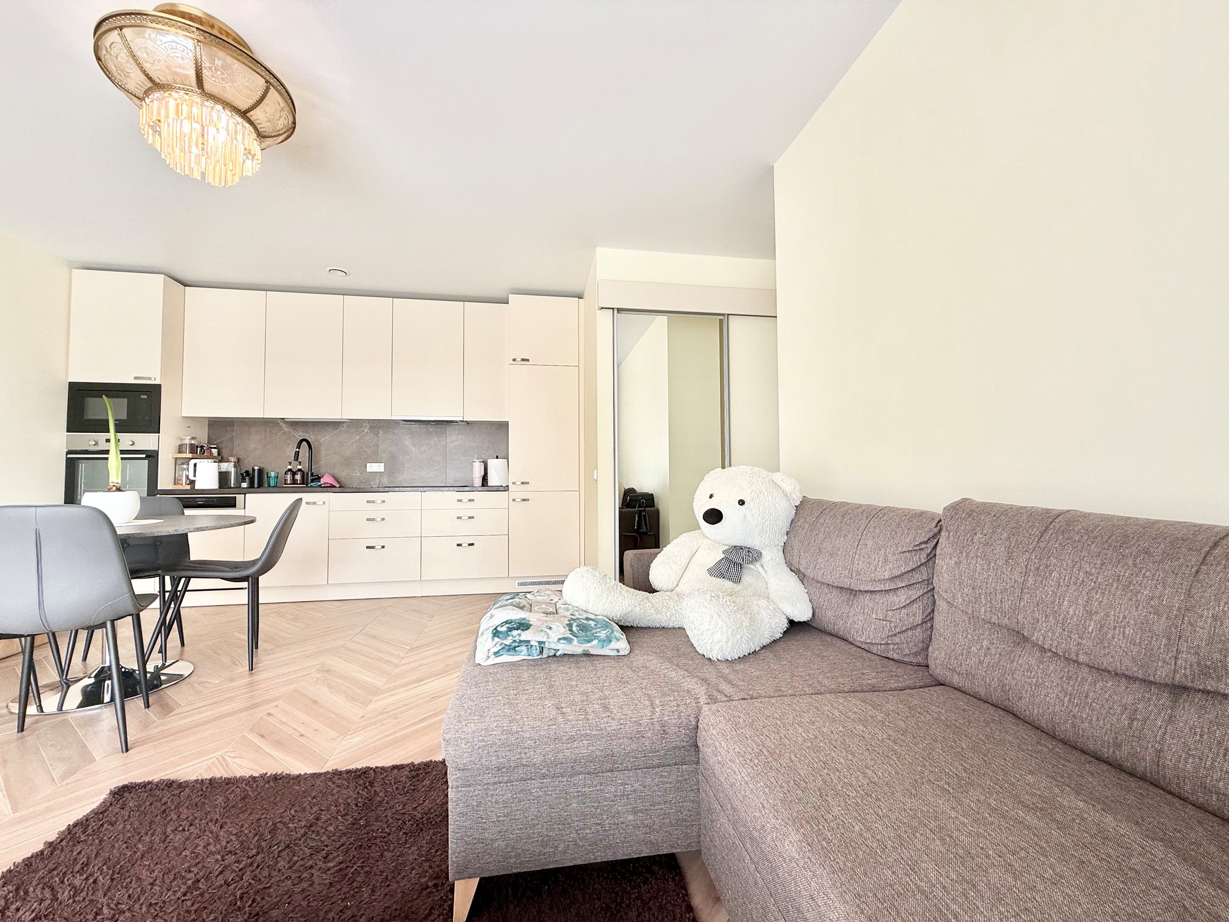 Bute yra visi reikalingiausi baldai, indaplovė, skalbimo mašina, šaldytuvas su šaldikliu, viryklė ir t.t.