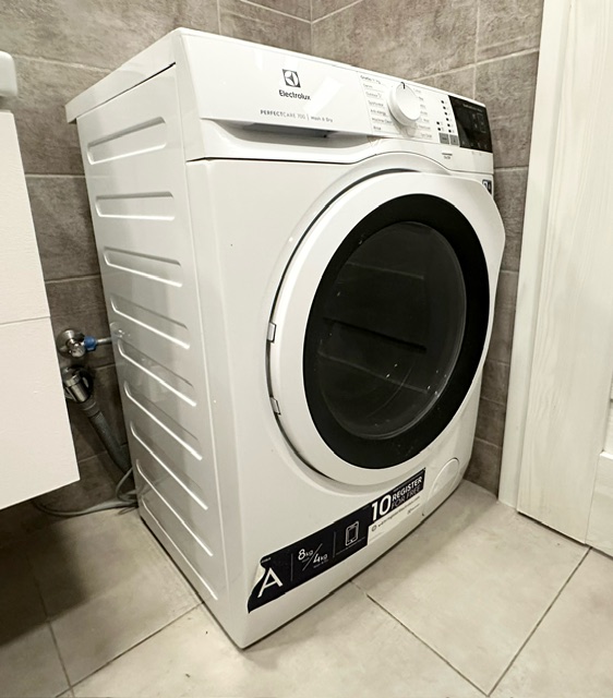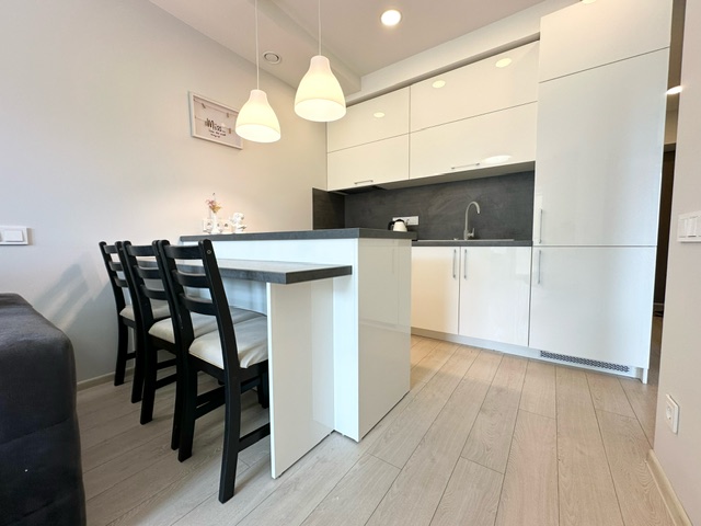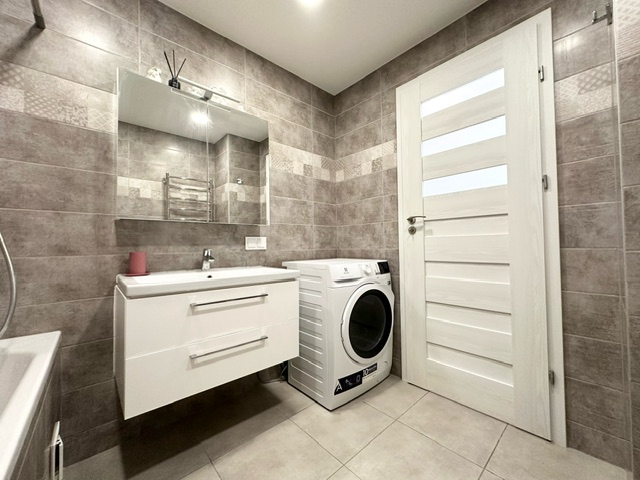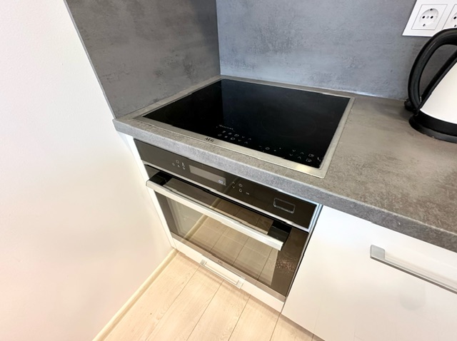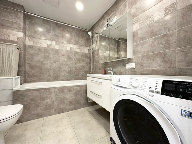 Bute yra visi reikalingiausi baldai, skalbimo mašina su džiovykle, indaplovė, šaldytuvas su šaldikliu,viryklė ir t.t.