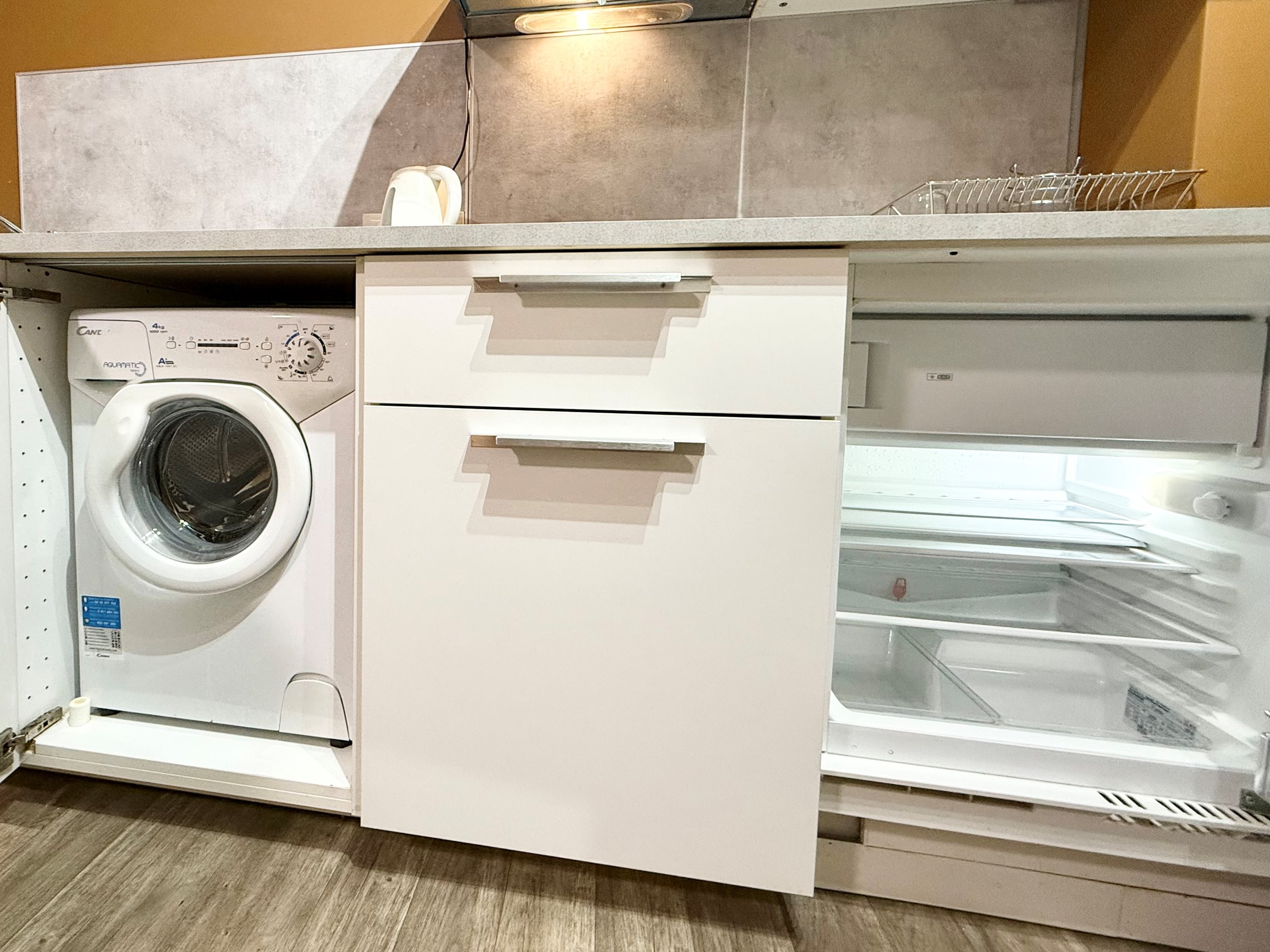 Bute yra visi reikalingiausi baldai, skalbimo mašina, šaldytuvas su šaldikliu, viryklė ir t.t.