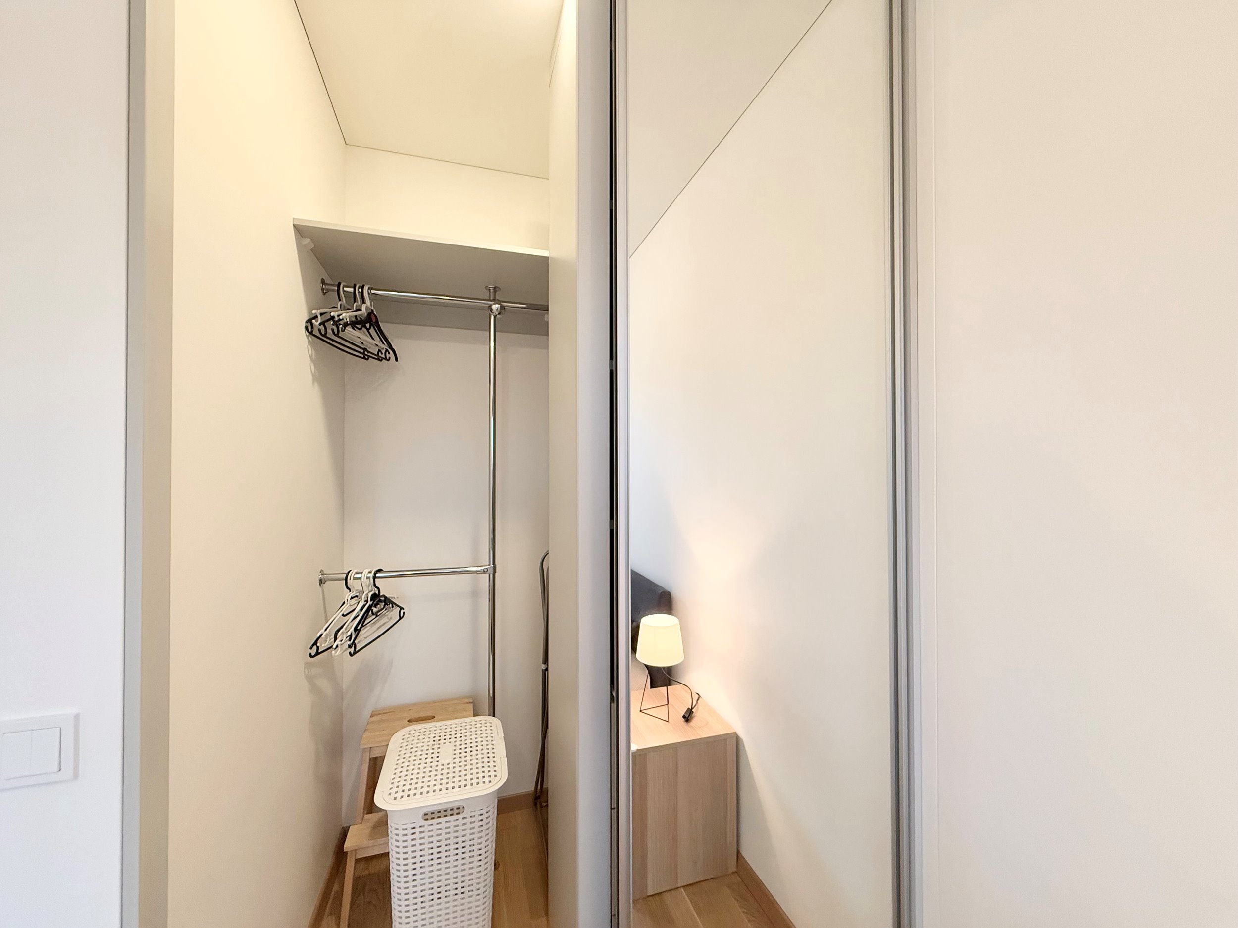 Išplanavimas: svetainė/virtuvė, miegamasis, tualetas ir dušas kartu, balkonas, drabužinė.