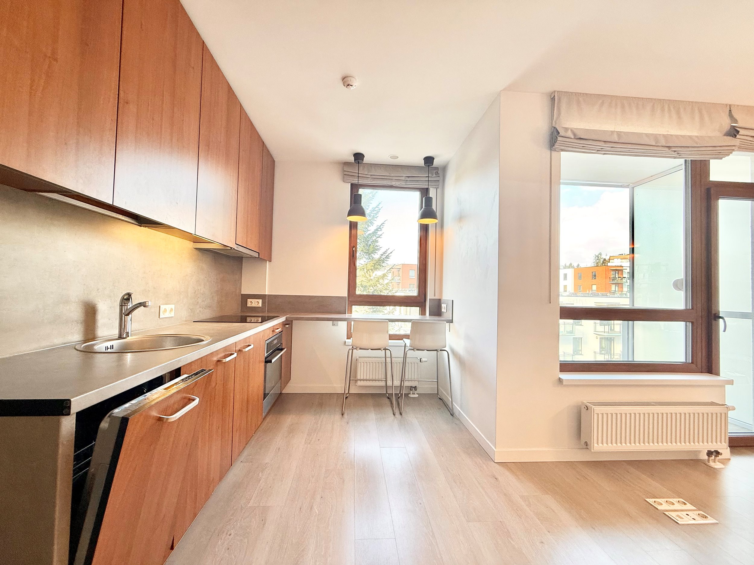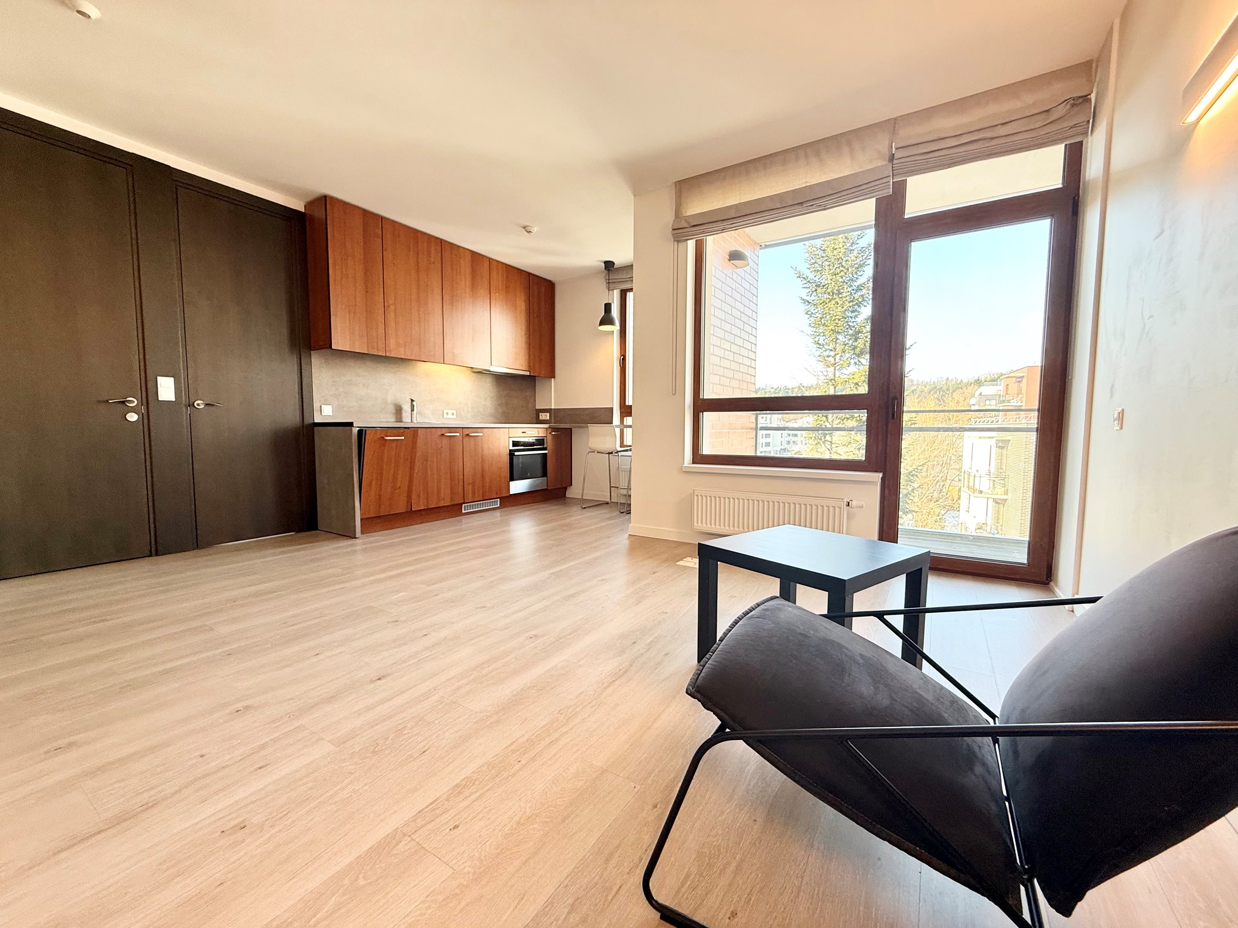 Išplanavimas: virtuvė/svetainė, miegamasis, vonios kambarys su dušu. Balkonas.