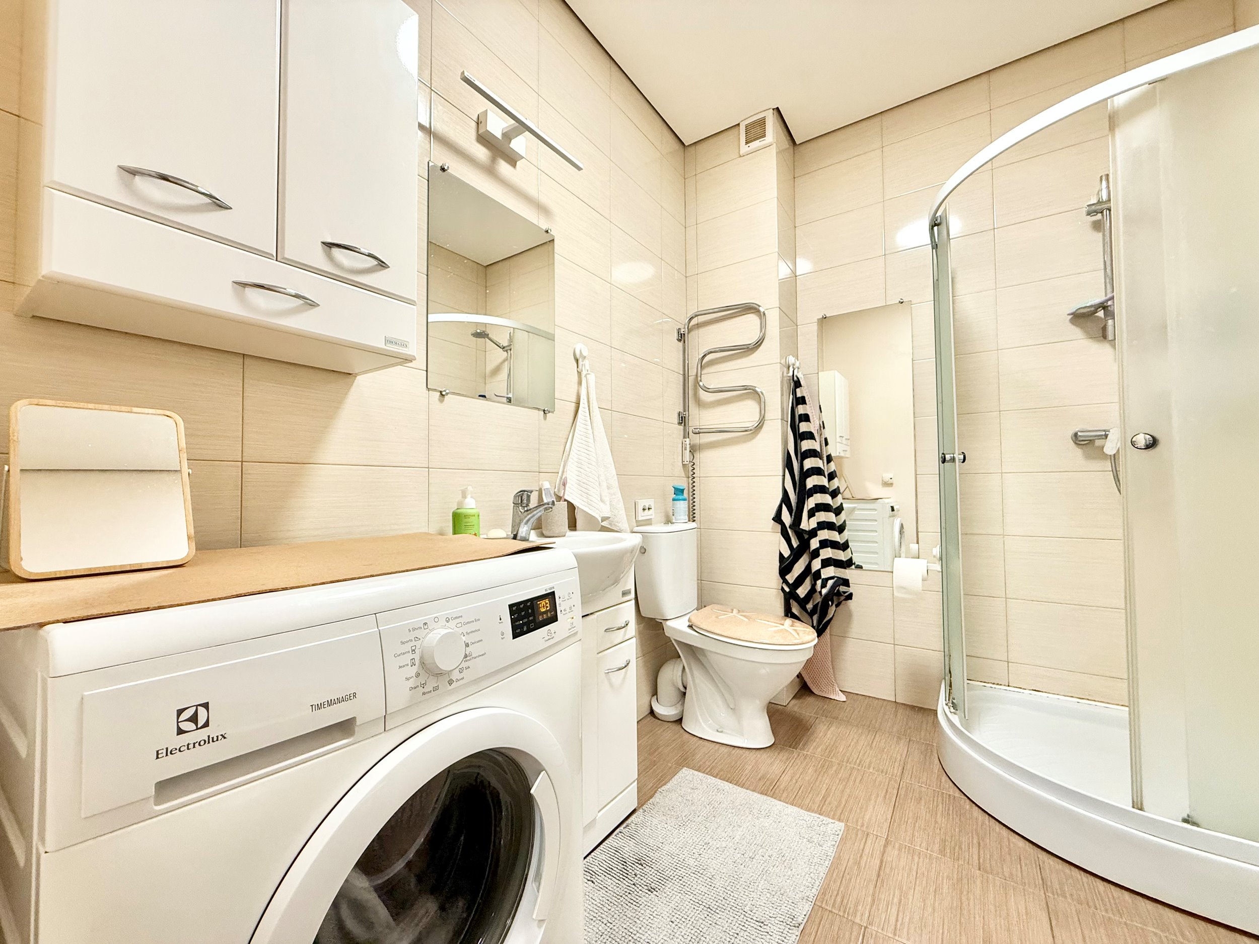Išplanavimas: virtuvė/svetainė, miegamasis, vonios kambarys su dušu, balkonas.