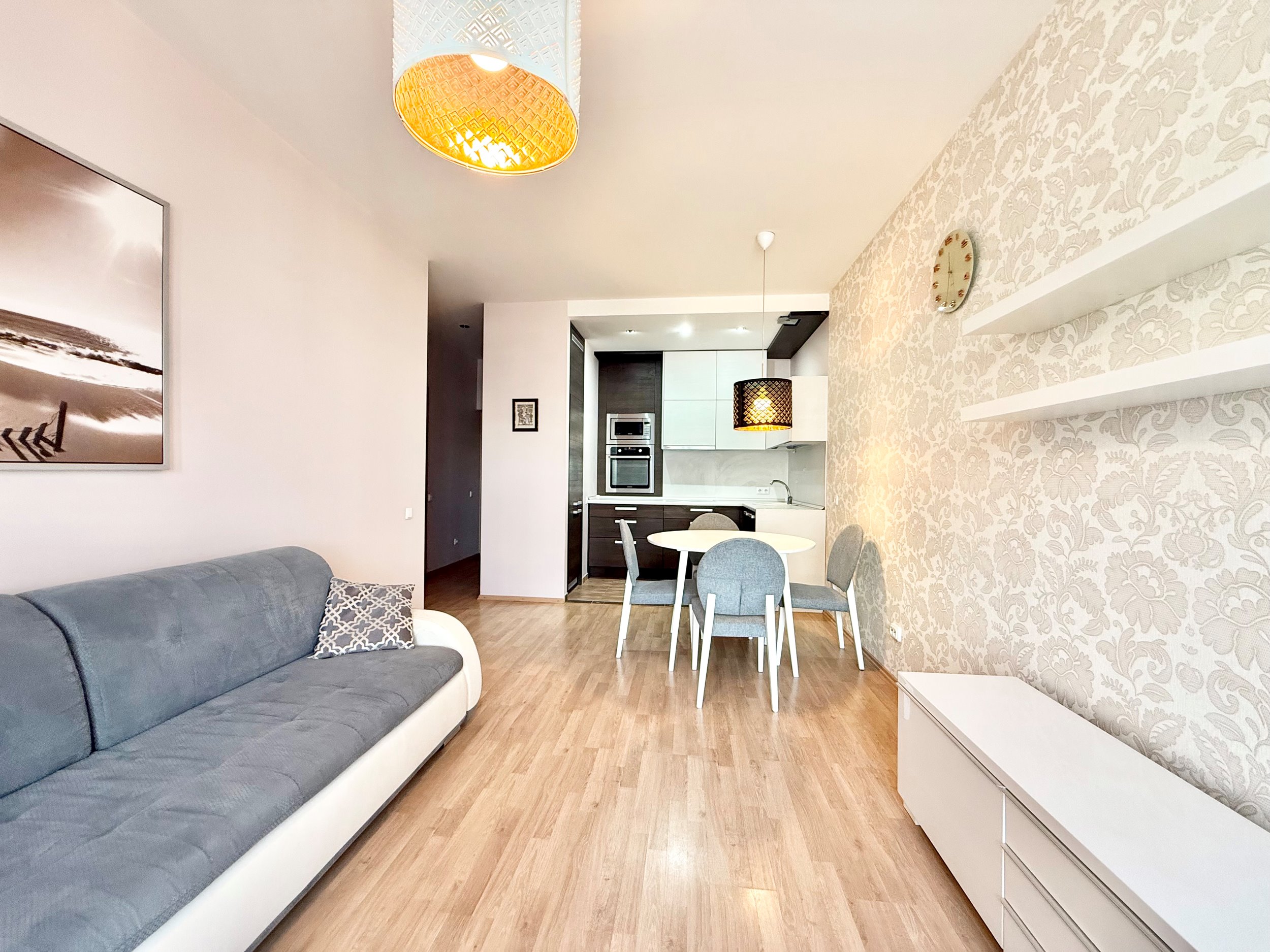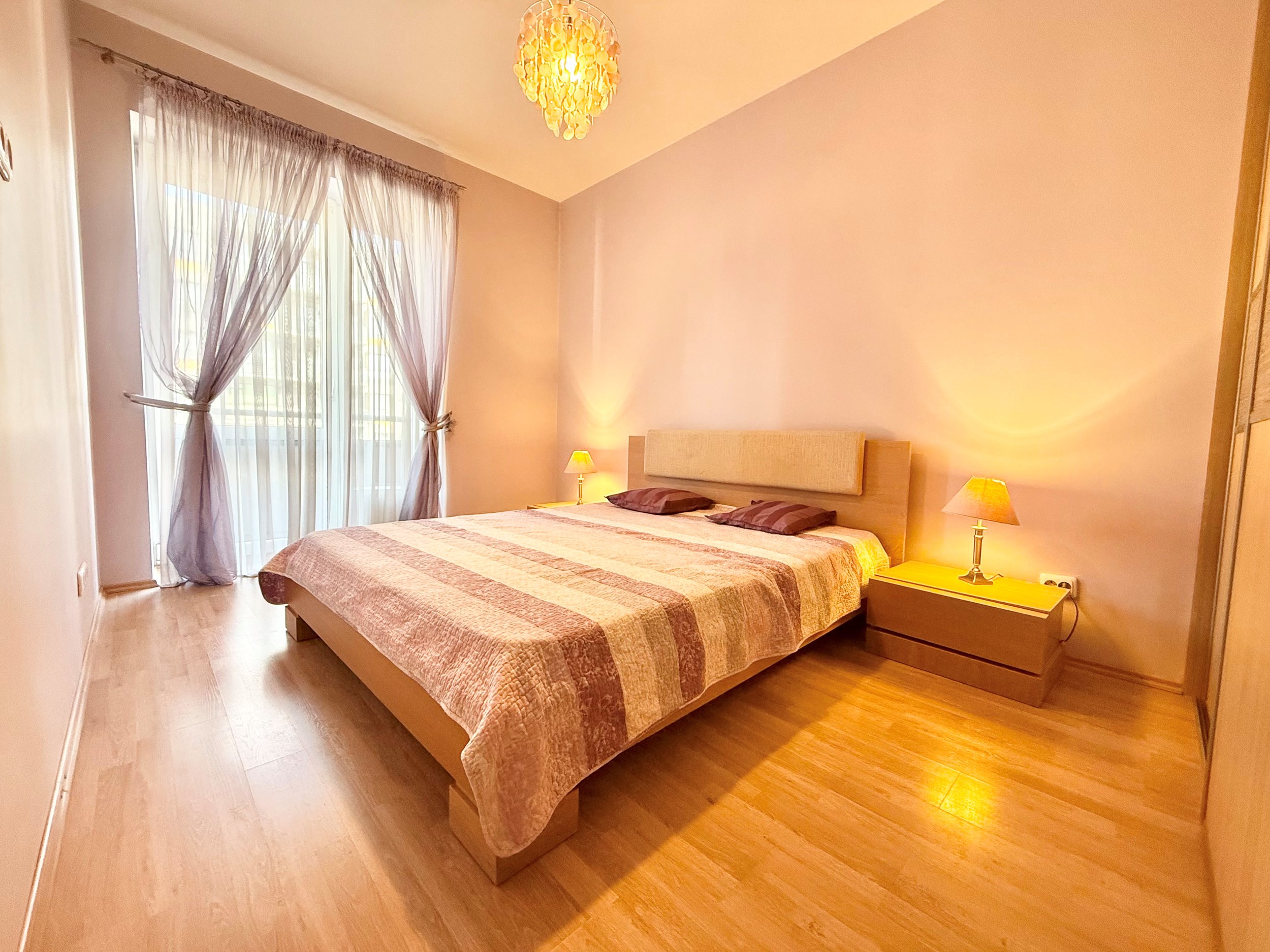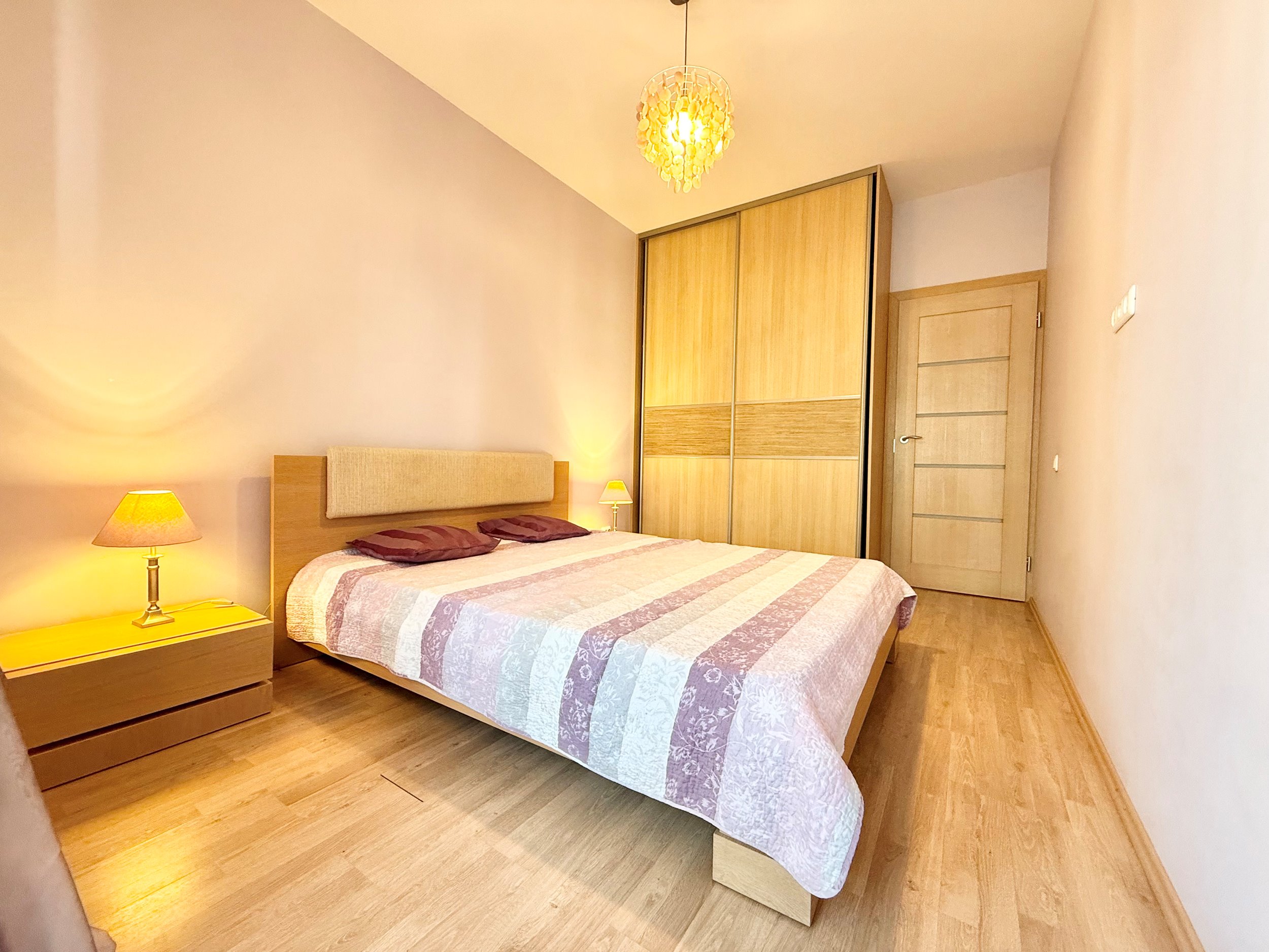 Bute yra visi reikalingi baldai, sofa-lova, dvigulė lova miegamajame, drabužių spinta, šaldytuvas su šaldikliu, viryklė, skalbimo mašina, indaplovė.