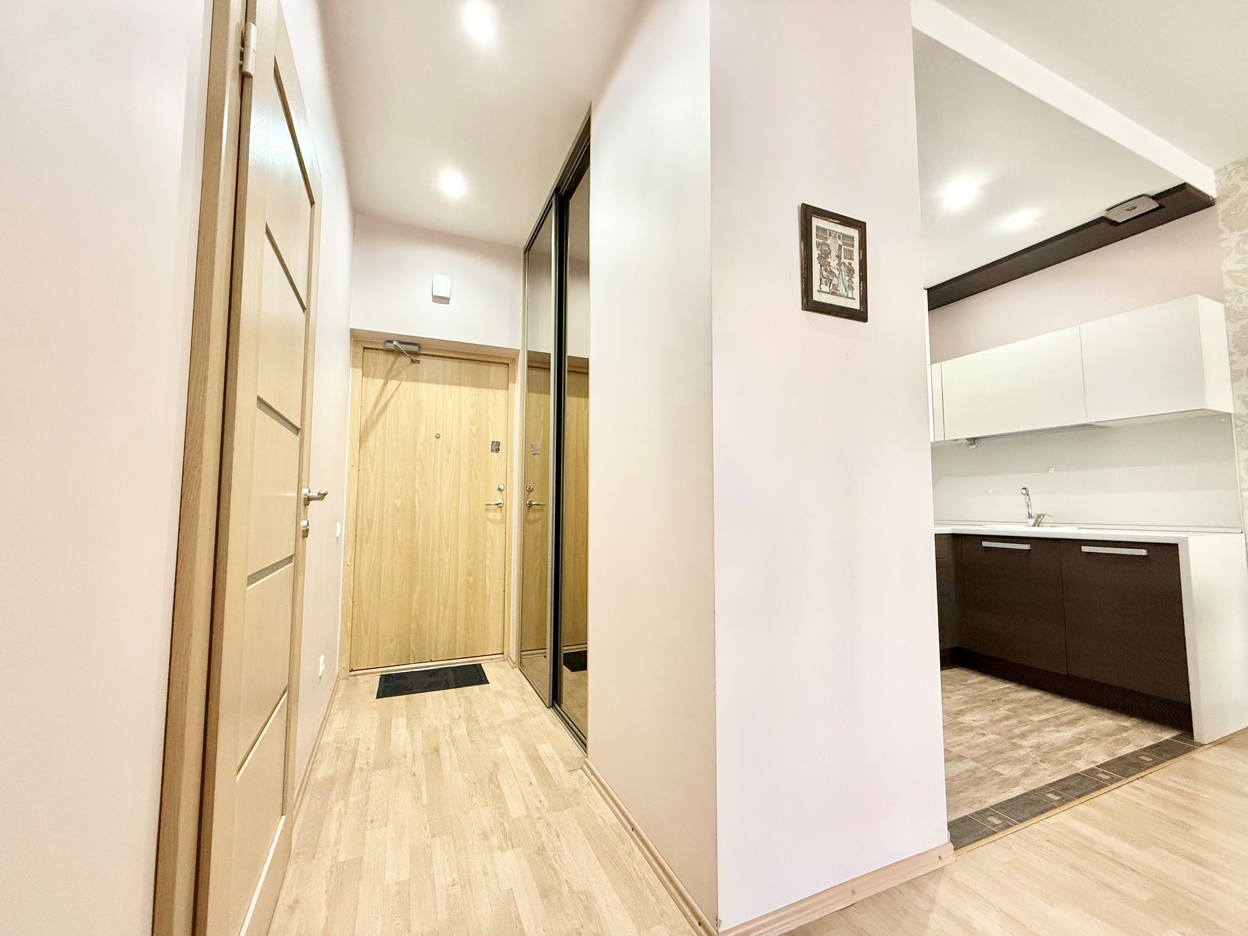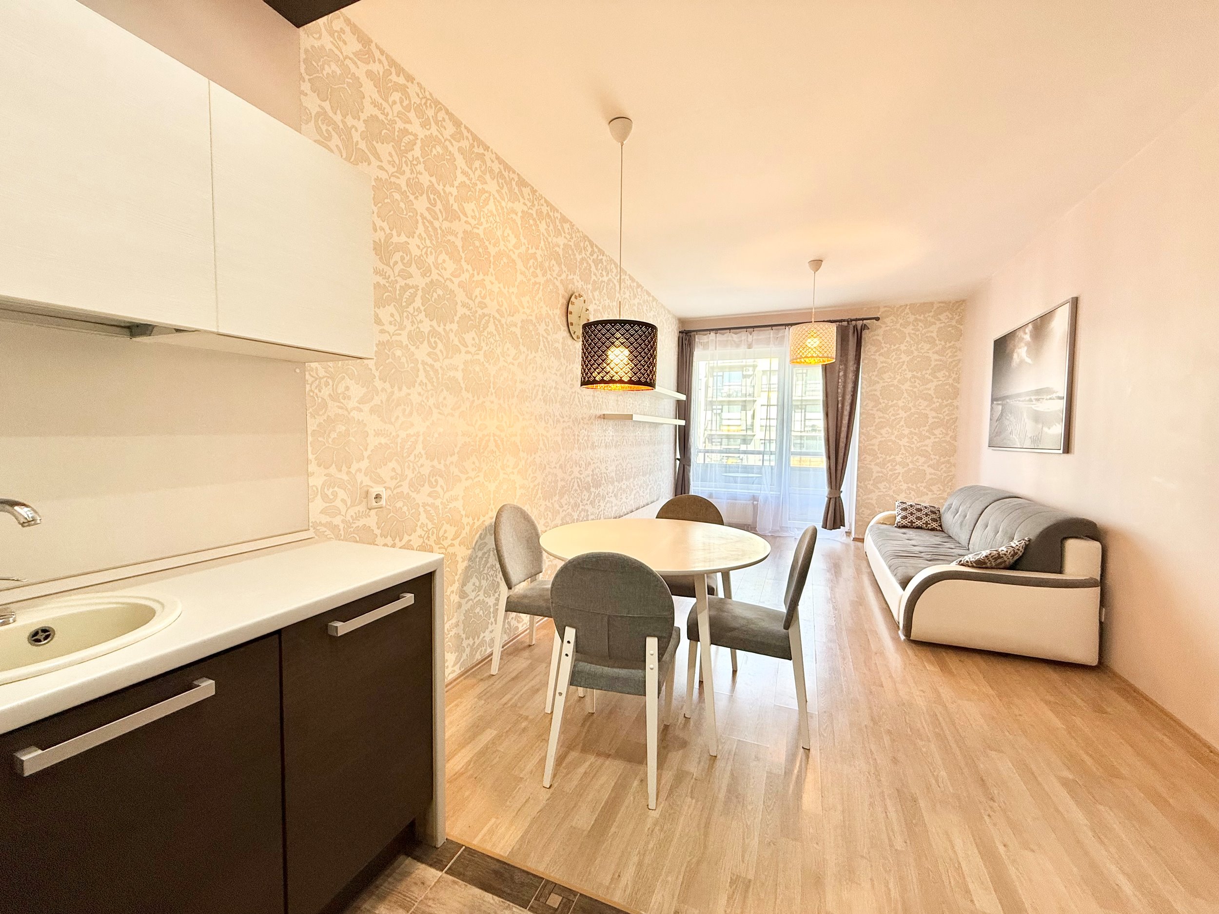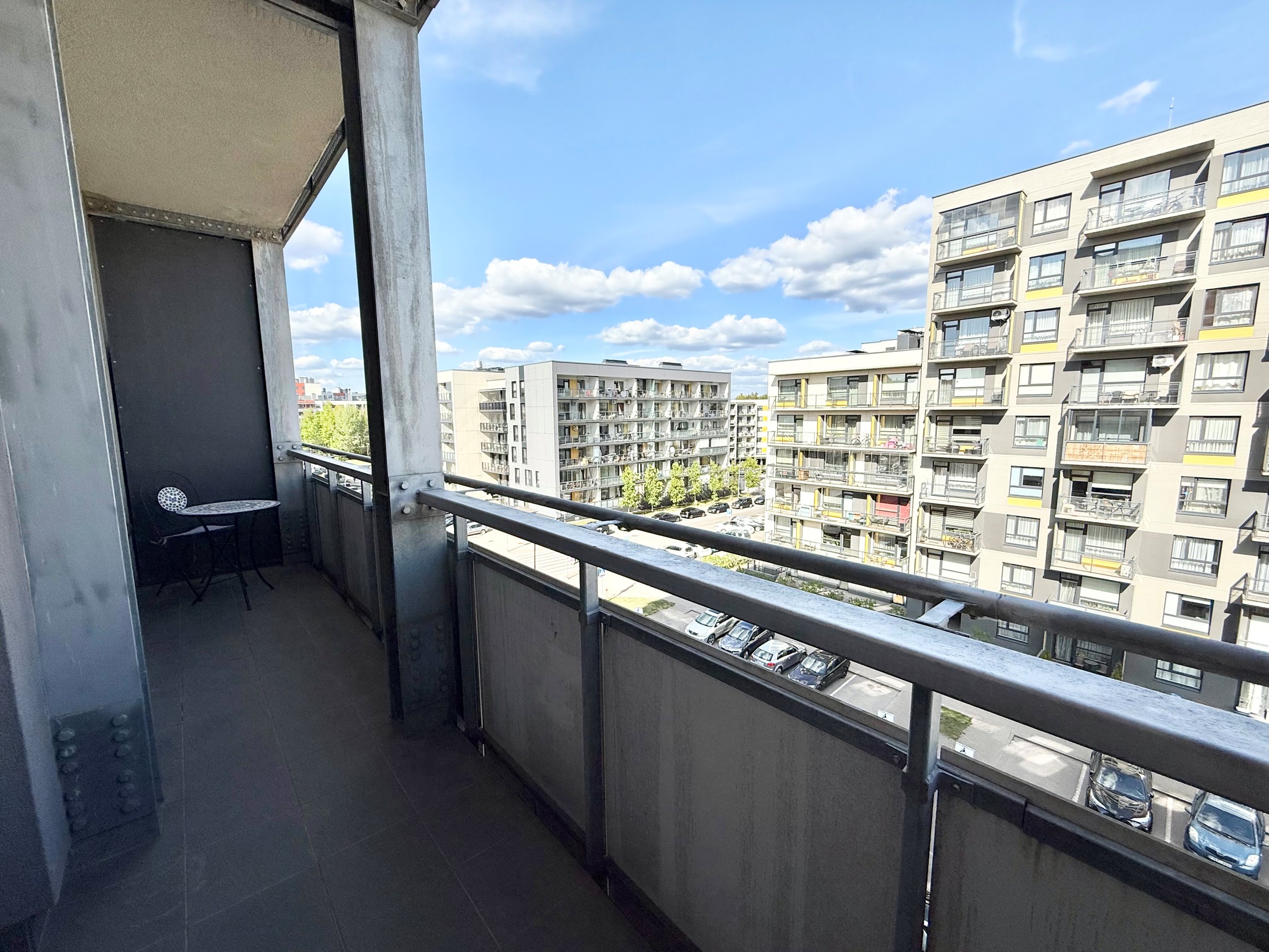 Išplanavimas: svetainė sujungta su virtuve, atskiras miegamasis, vonios kambarys su vonia, balkonas.
