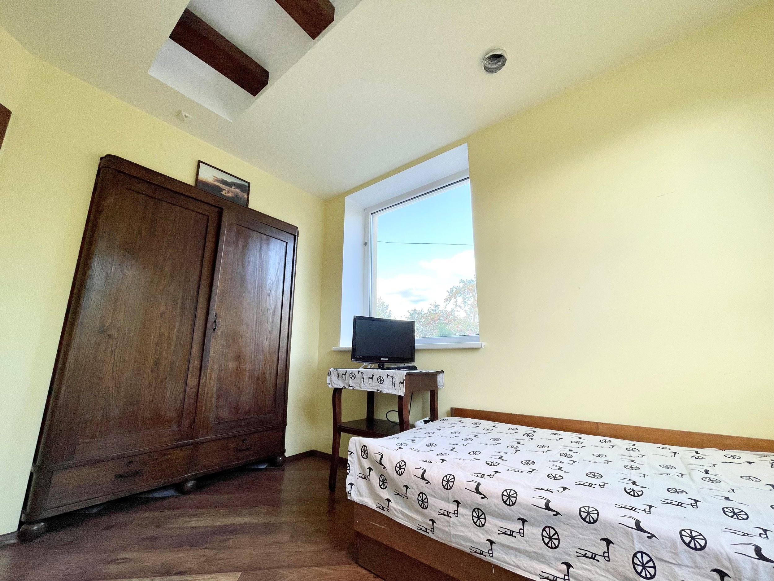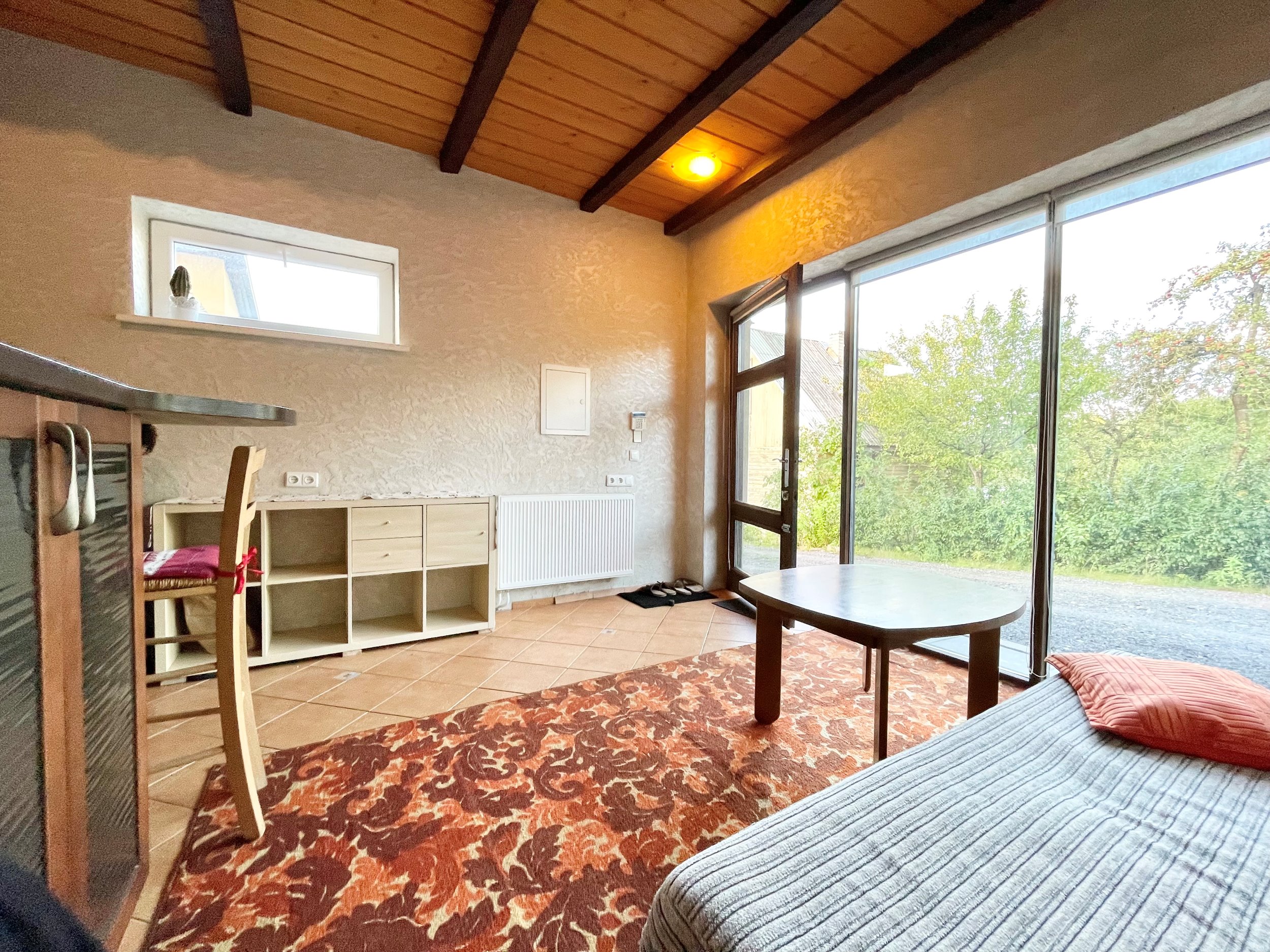 Išplanavimas: miegamasis, svetainė, virtuvė, tualetas ir dušas kartu.