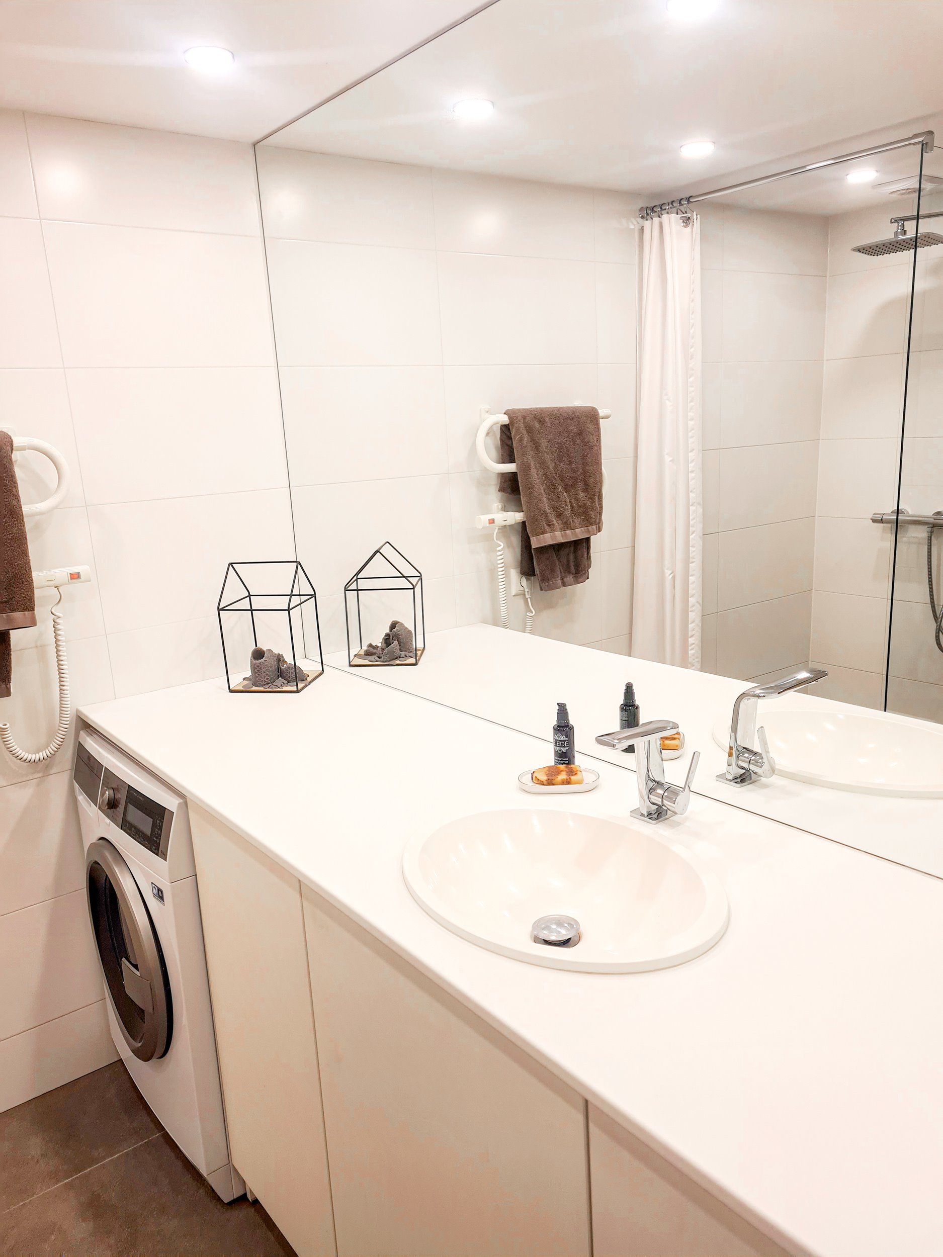 Bute yra visi reikalingiausi baldai, sofa-lova, skalbimo mašina, šaldytuvas su šaldikliu, viryklė ir t.t.
