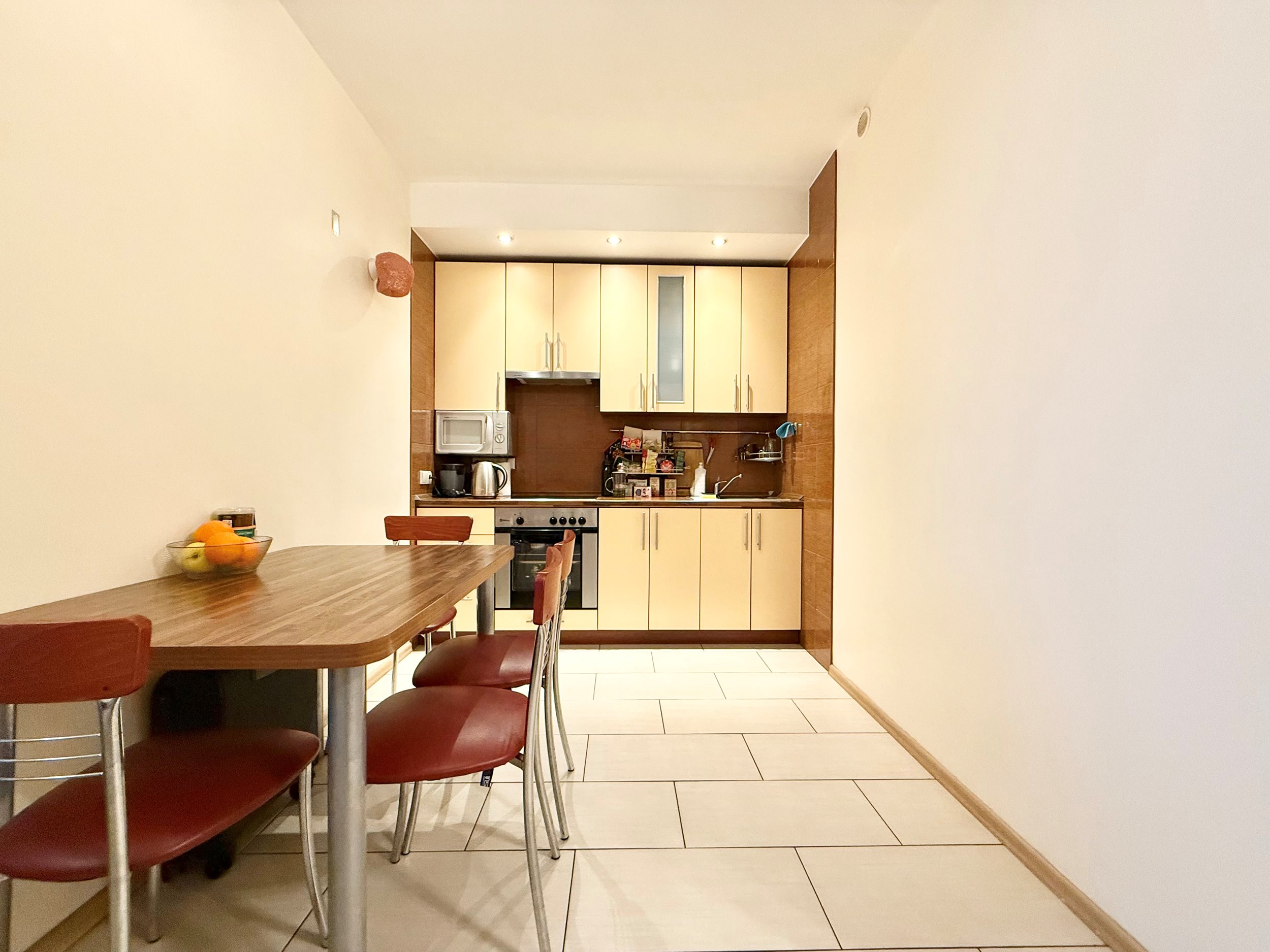 Bute yra visi reikalingiausi baldai, sofa-lova, skalbimo mašina su džiovinimo funkcija, šaldytuvas su šaldikliu, viryklė ir t.t.