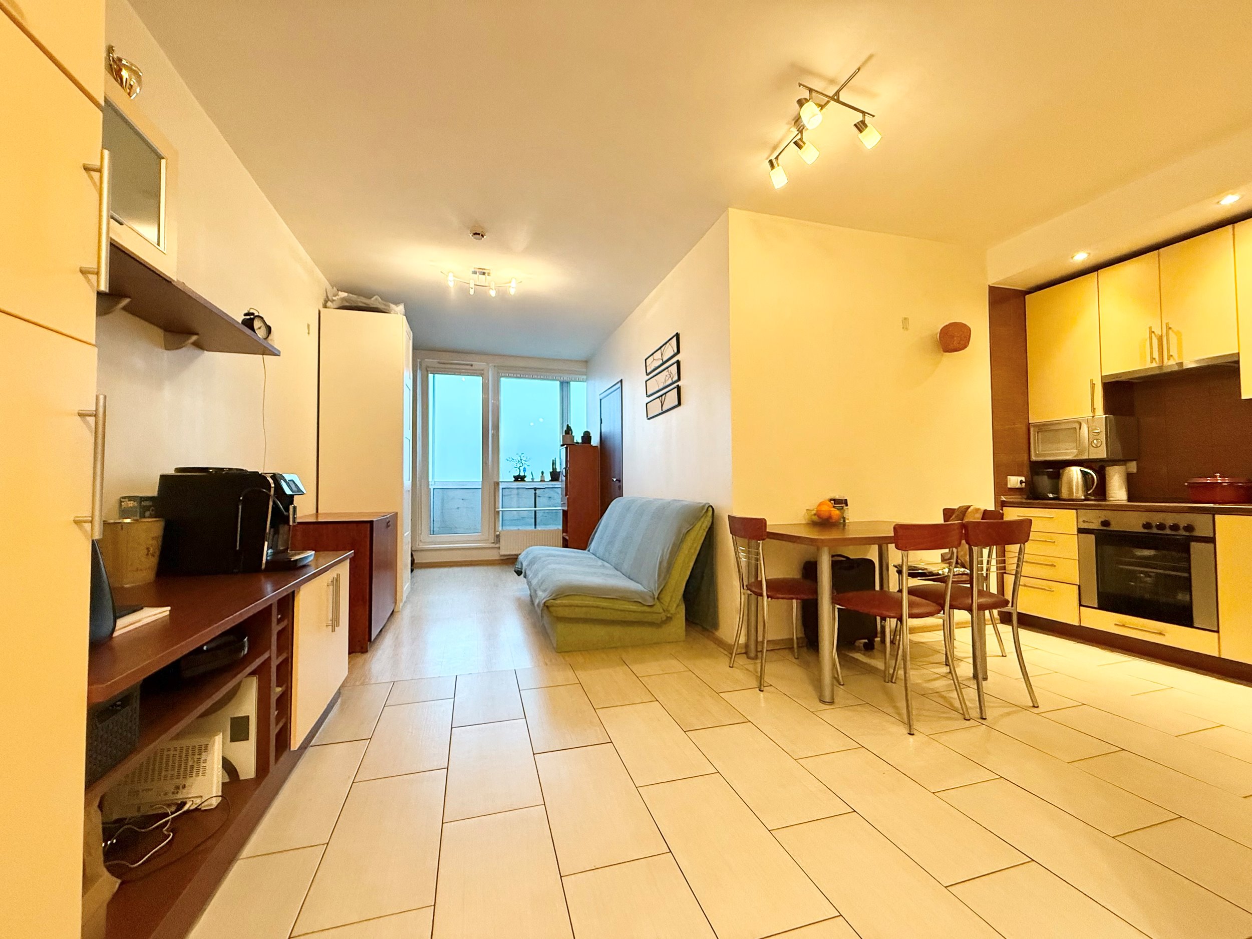 Bute yra visi reikalingiausi baldai, sofa-lova, skalbimo mašina su džiovinimo funkcija, šaldytuvas su šaldikliu, viryklė ir t.t.