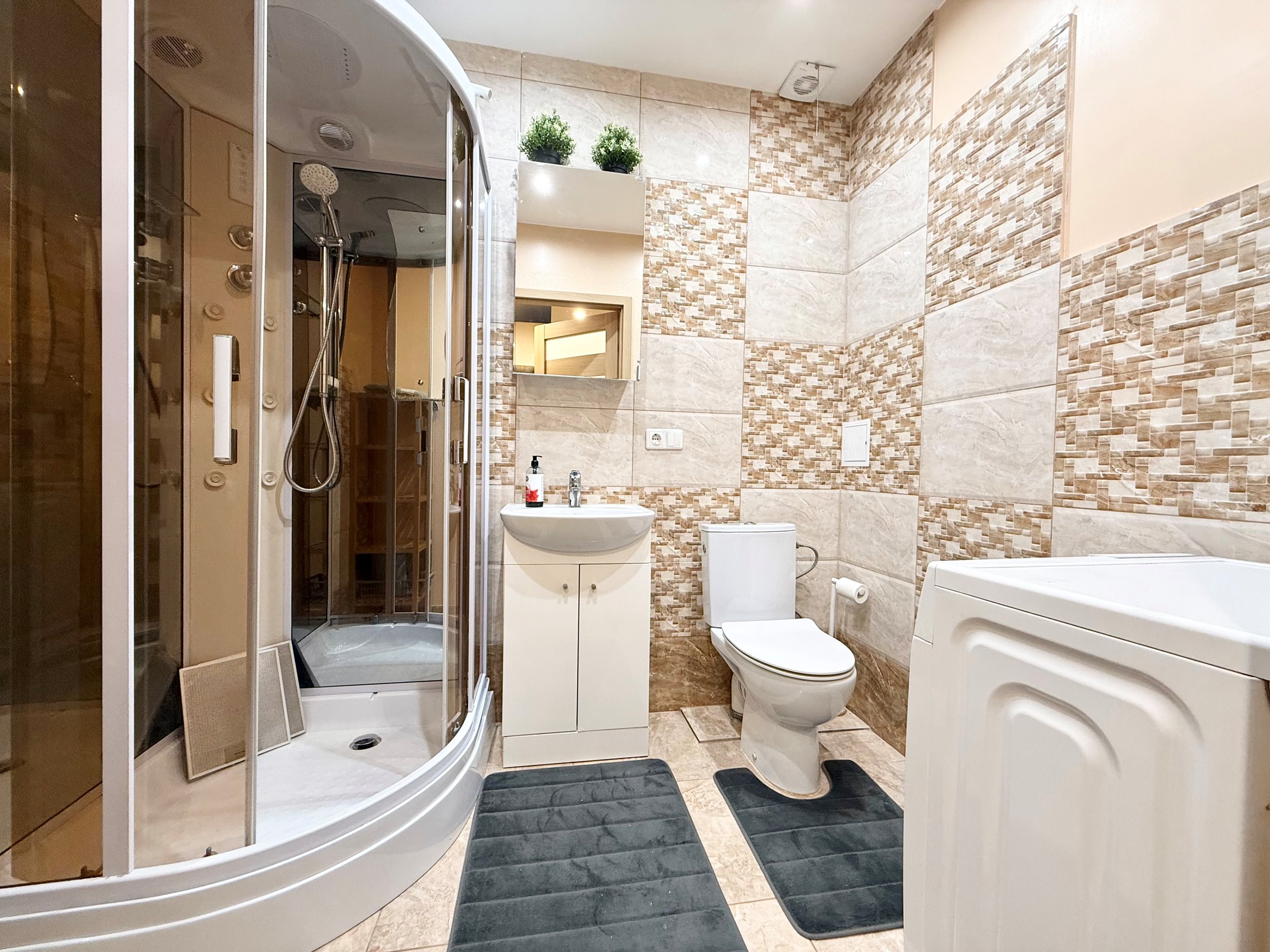 Bute yra visi reikalingiausi baldai, sofa-lova, skalbimo mašina, šaldytuvas su šaldikliu, viryklė ir t.t.