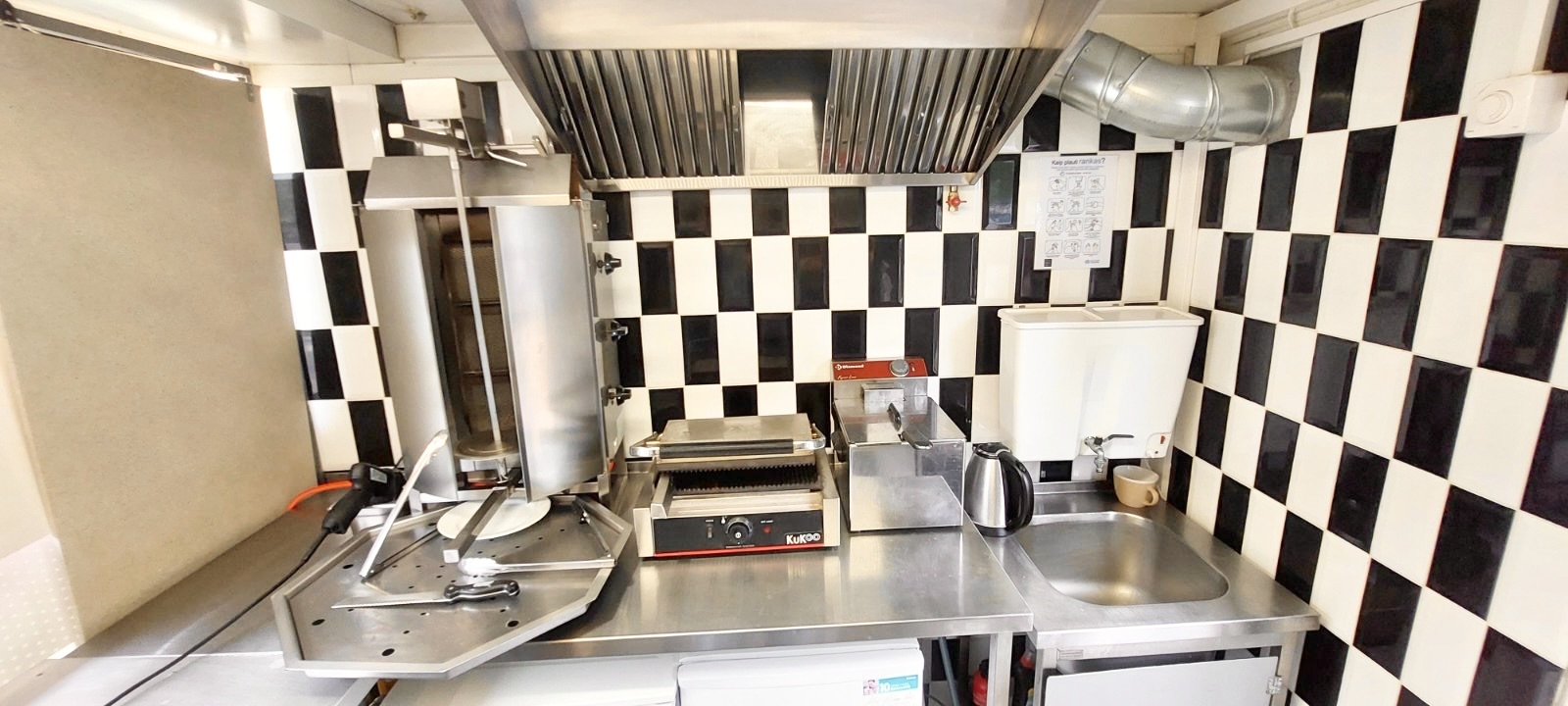 Parduodamas 7,5 kv. m paviljonas su visa veiklai reikalinga įranga ir išduotais leidimais maisto gamybai. Įrengta kebabinė, paruošta darbui iš karto.